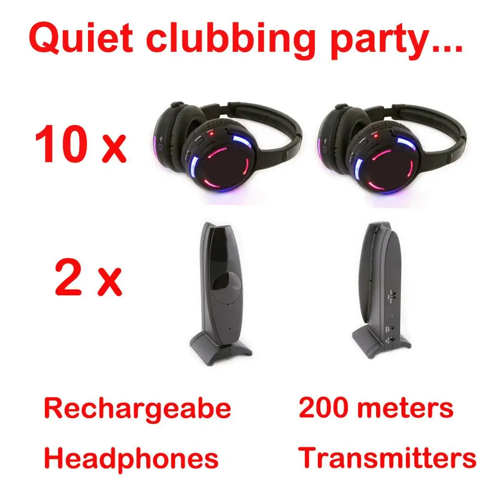 Заводская поставка, 2 канасветодиодный светодиодные бесшумные диско-наушники, полная система 10 + 2