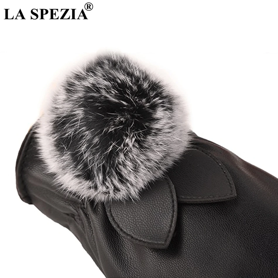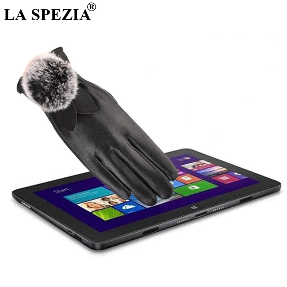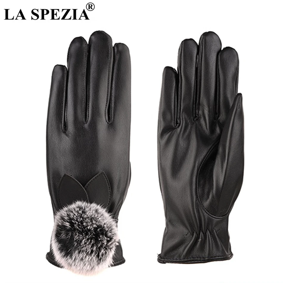 Женские кожаные перчатки LA SPEZIA, зимние перчатки с помпоном из кроличьего меха, розовые элегантные ветрозащитные флисовые женские перчатки из искусственной кожи