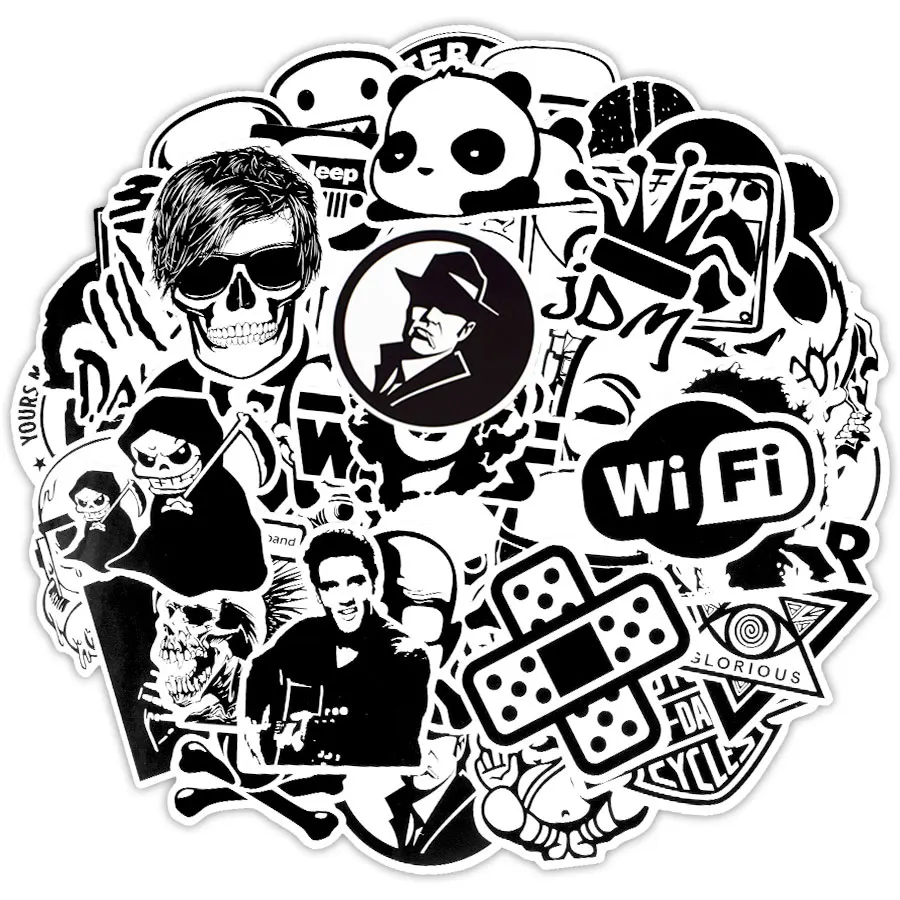 100 шт. черно-белые случайные наклейки смешные граффити рок мультфильмы наклейки сделай сам автомобиль скейтборд гитара шлем велосипед ноутбук холодильник