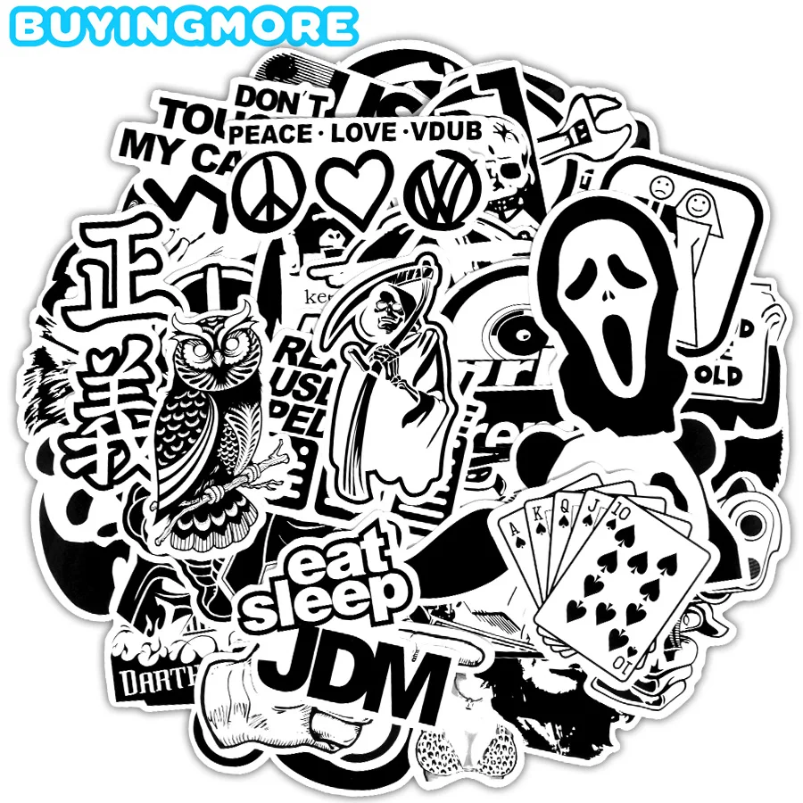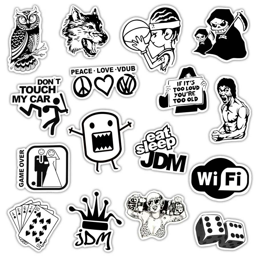 50 шт. черно-белые крутые наклейки JDM граффити забавные аниме накл...