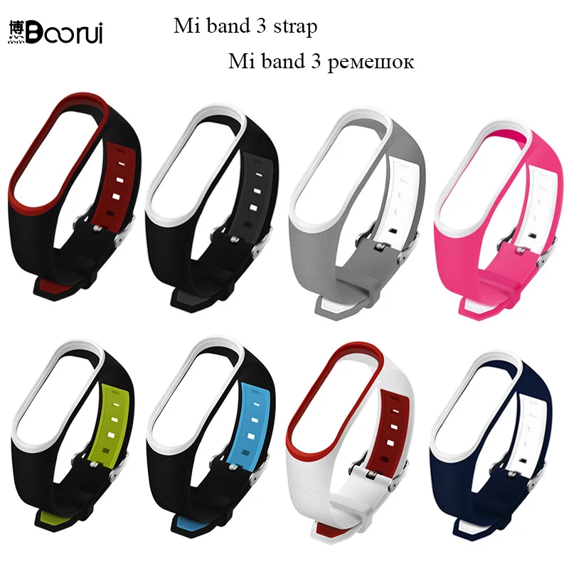 Ремешок BOORUI mi band 3, двойной цветной ремешок correa mi band 3, силиконовый ремешок для xiaomi mi 3, умный ремешок с пряжкой
