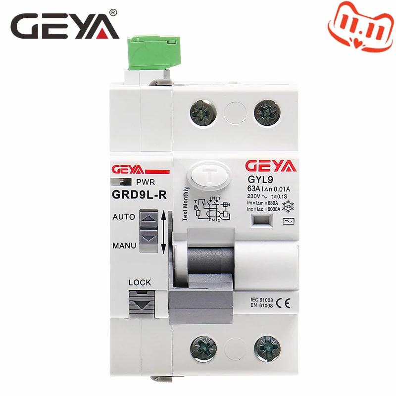 Автоматическое переключающее устройство GEYA GRD9L-R 6KA ELCB RCCB, Автоматический выключатель 2P 40A 63A 30mA 100mA 300mA RCD