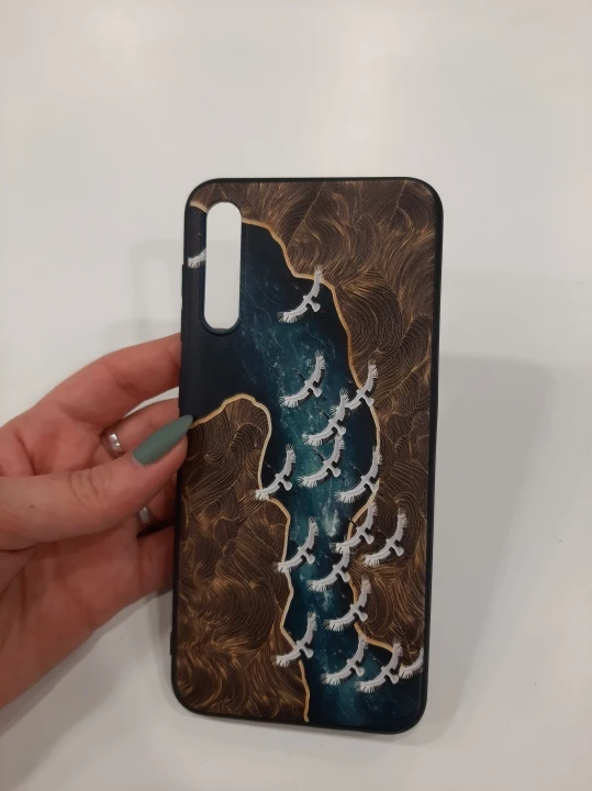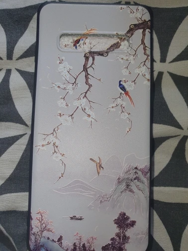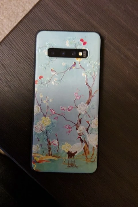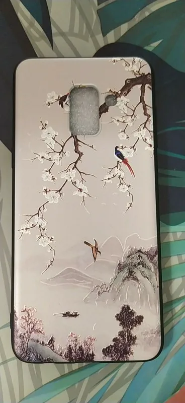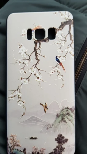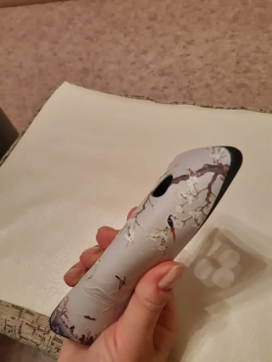 чехол классный, все по размеру тютелька в тютельку. если носом уткнуться прям в чехол, то пахнет какой-то зеленкой, но держа в руках не чувствуется. упругий и гибкий, по бокам матовый. взяла с птичками над рекой в надежде, что не будет заметен истинный цвет телефона в вырезе под камеру и вспышку (у меня телефон тёмно-синий). все ок, цвет сливается. тиснение аккуратное, рисунок не сполз, камера из чехла не высовывается. дошел быстро, взяла за 158р. с продавцом не общались, быстро отправил. похожу пару недель, посмотрю - царапается ли, может дополню.