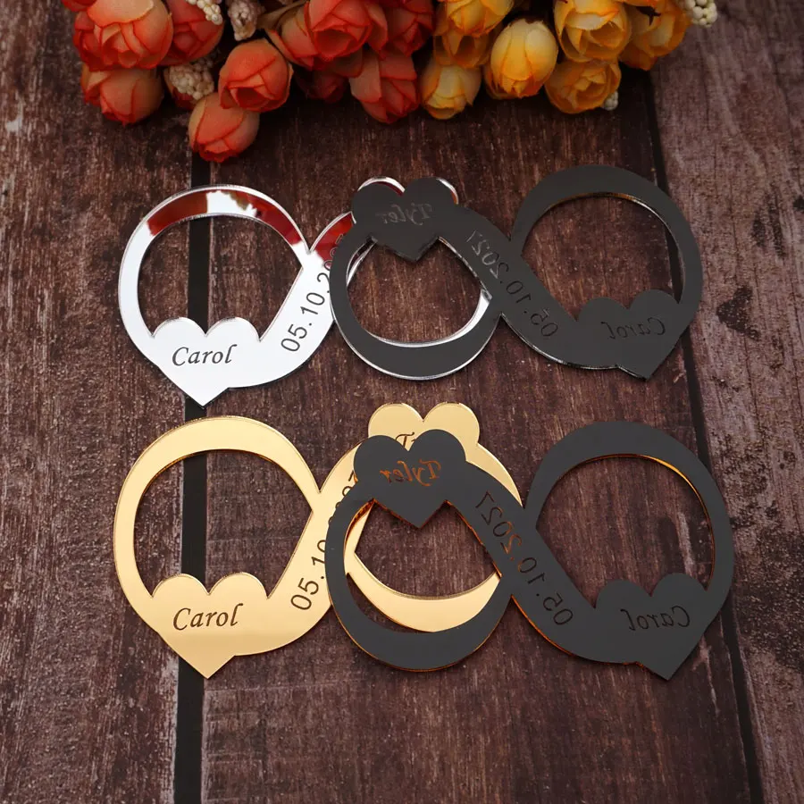 30 шт. на заказ 10 см символ бесконечности акриловые зеркальные бирки Мемориальный Знак Идеи свадебной вечеринки Персонализация декора сувениры
