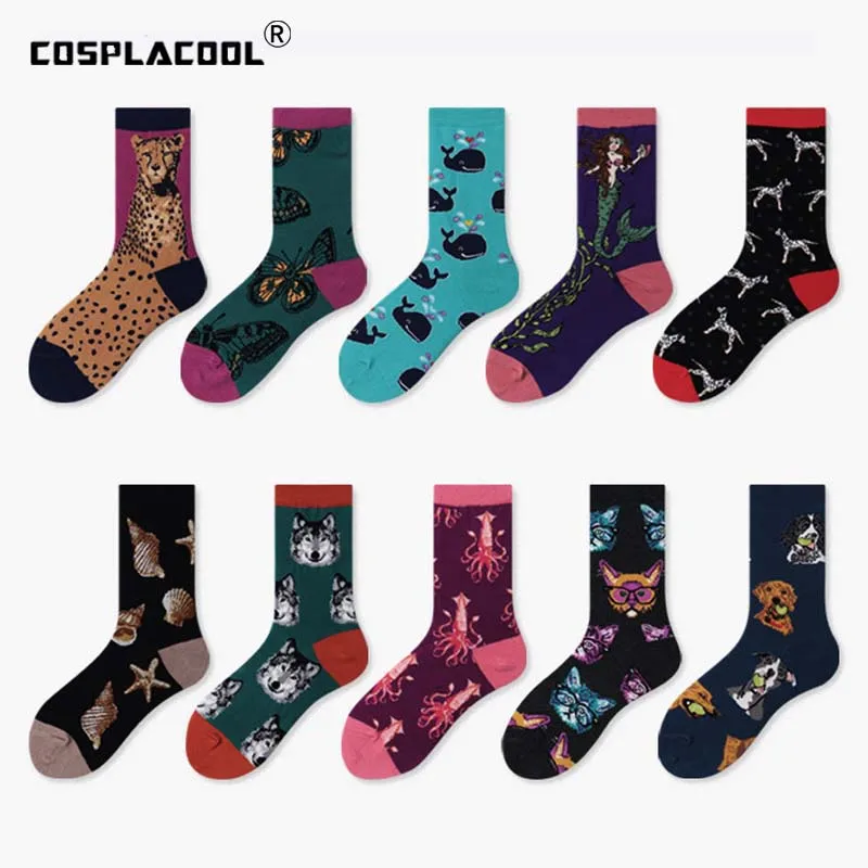 Носки женские хлопковые в стиле Харадзюку, потрясающие Смешные Мультяшные, уличные милые в стиле хип-хоп для девушек, крутые модные