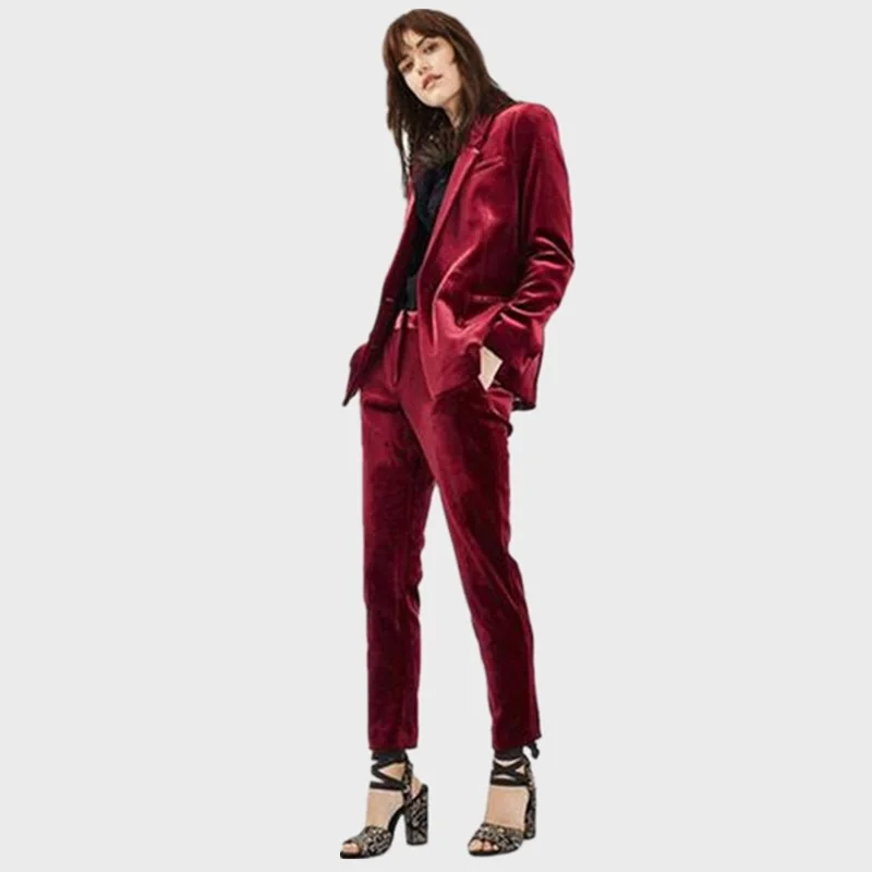 Элегантные красные бархатные Деловые женские брючные костюмы, модные женские брючные костюмы, женские костюмы, блейзер с брюками на заказ