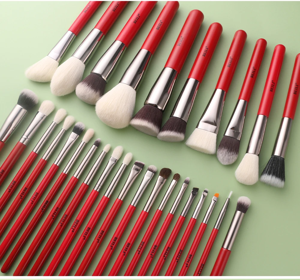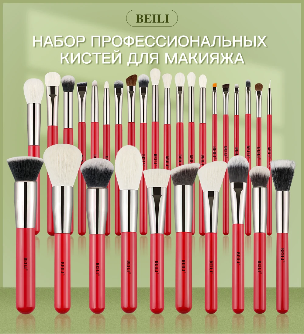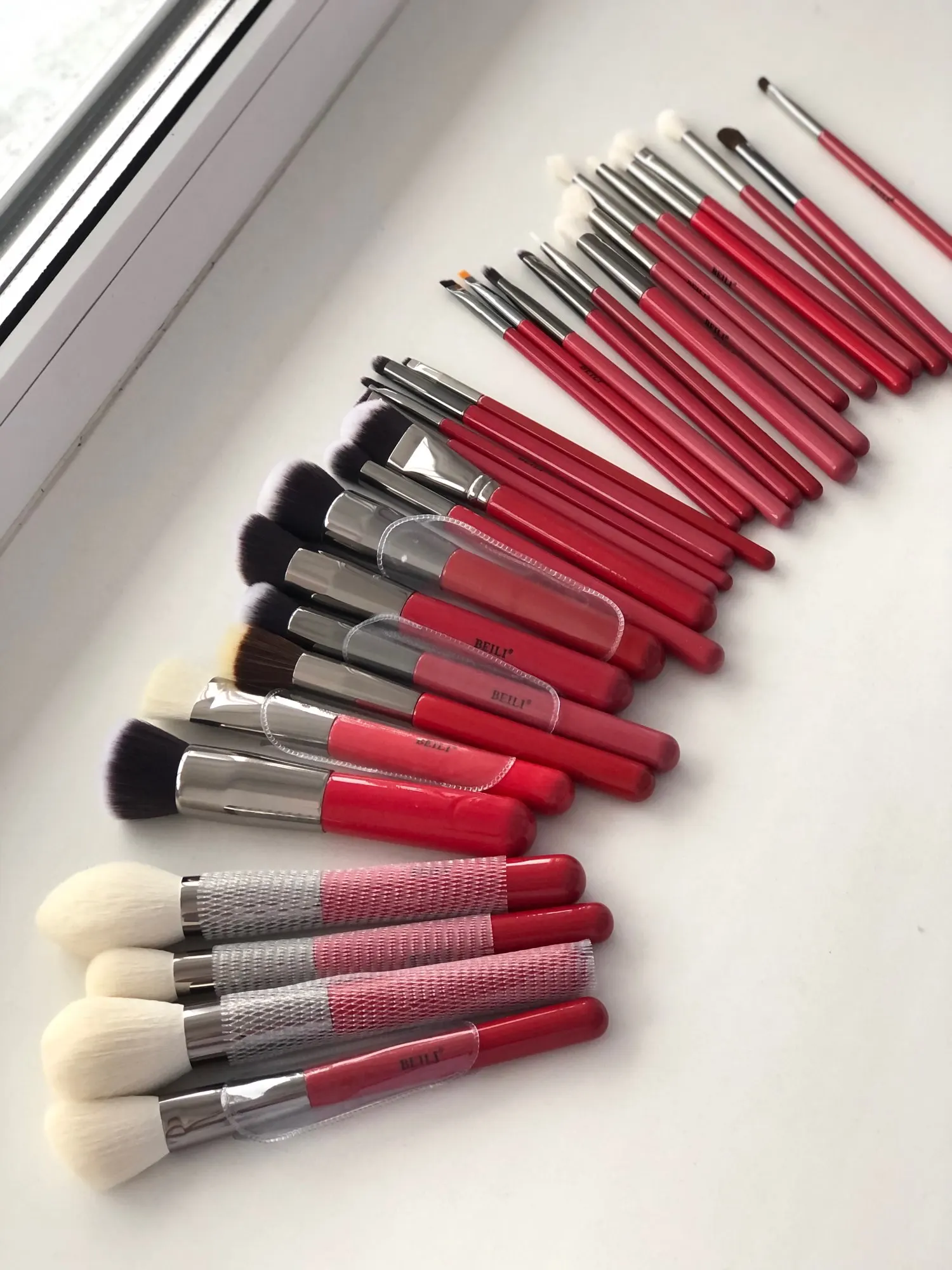 BEILI красные кисти для макияжа из натурального материала набор 11-30 шт тональный порошок Хайлайтер для ресниц бровей Профессиональные Тени для век кисть для макияжа