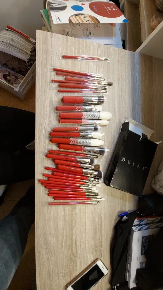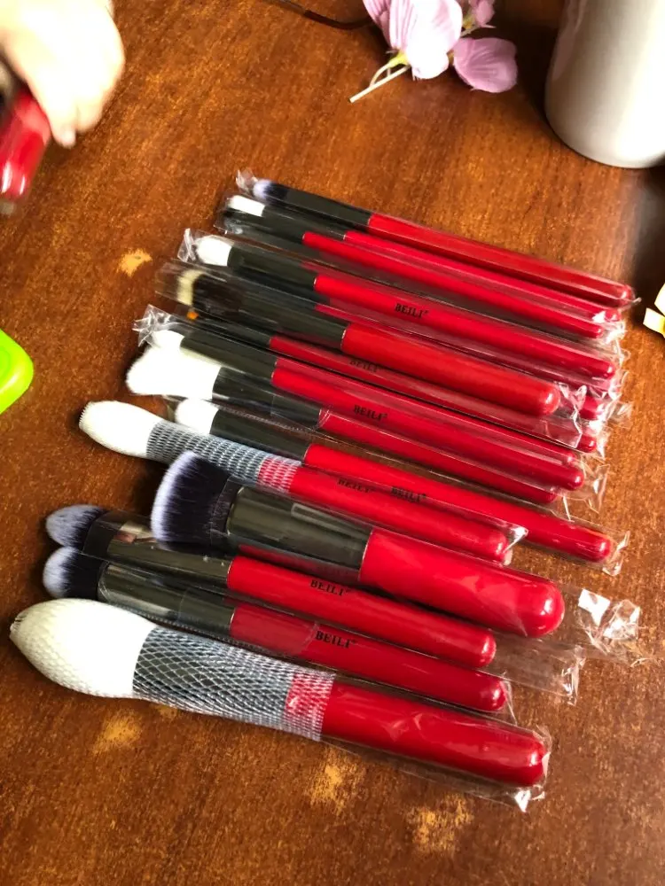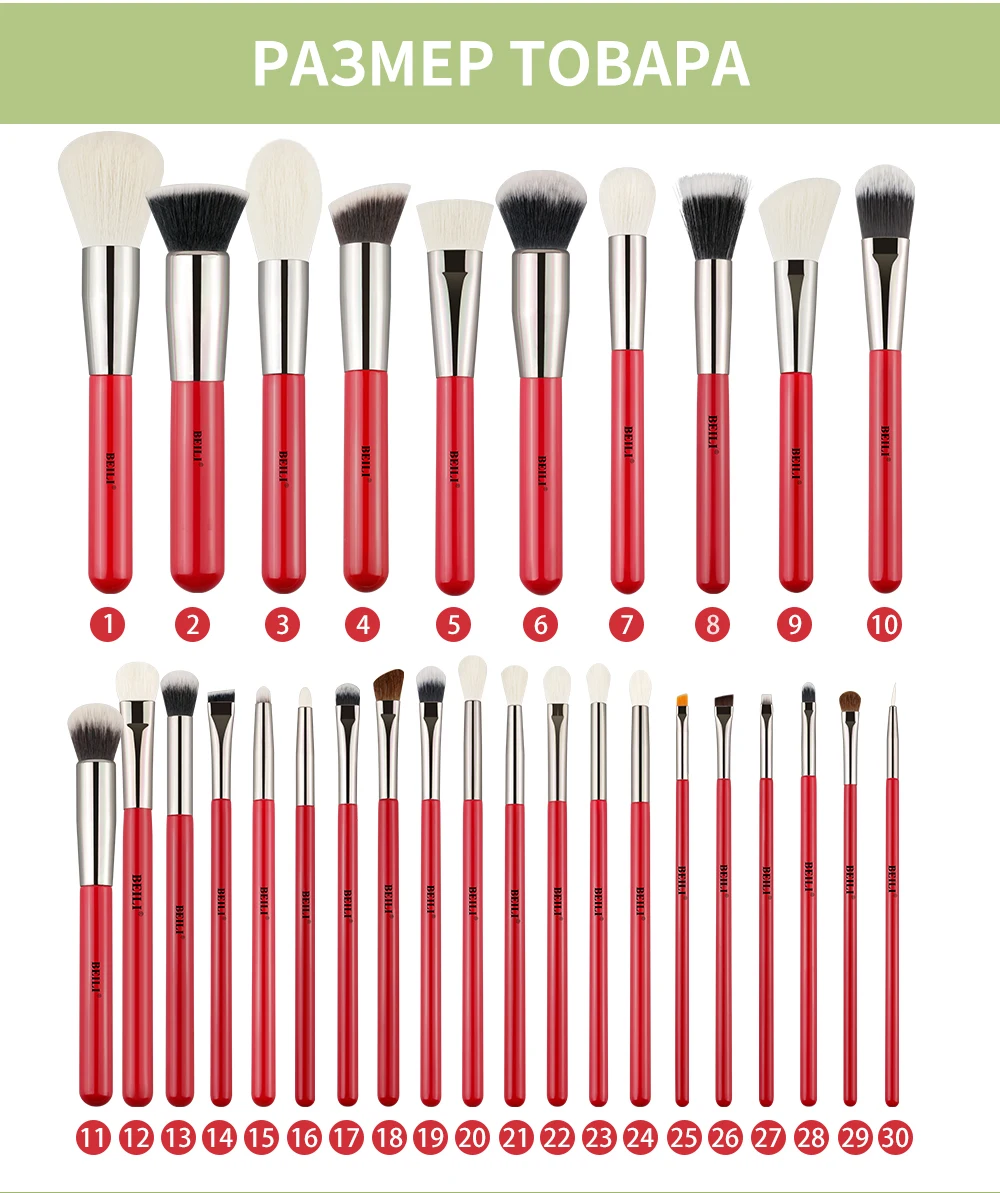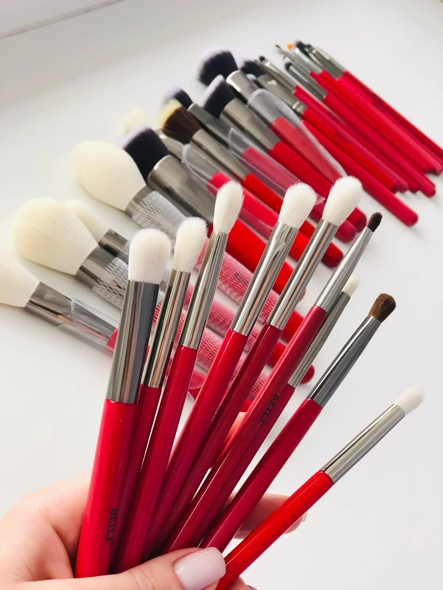 BEILI красные кисти для макияжа из натурального материала набор 11-30 шт тональный порошок Хайлайтер для ресниц бровей Профессиональные Тени для век кисть для макияжа