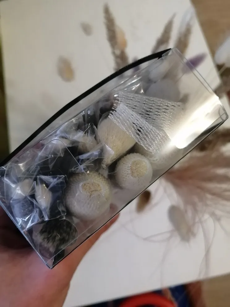 Заказ пришел за 5 дней с доставкой из РФ на почту. С небольшой трещинкой на упаковке, не критично. Брала для сестры, так что какие в пользовании не смогу сказать. А вообще выглядят очень качественно, внушают доверие. Каждая кисть в индивидуальной упаковке. Мягкие и приятные на ощупь. Видела, что такими же пользуются профессиональные визажисты С продавцом общаться не приходилось, отправка молниеносная
