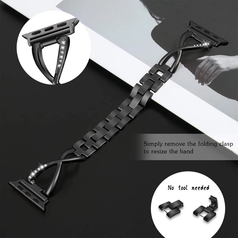 Материал: высококачественная нержавеющая сталь, а не недорогой цинк или алюминиевый сплав делают его элегантным повседневным спутником. Подходит для запястий 5,5-8,1 дюймов.Дизайн: тонкий и элегантный, чтобы дополнить тонкое запястье, этот ремешок для часов Apple Watch 38 мм украшен сверкающими стразы. Женские ремешки Iwatch 38 мм придадут вашему образу большой импульс благодаря его тонкому и воздушному внешнему виду.Легко изменять размер: шесть складывающихся застежек в каждой ленте идеально подходят для максимального комфорта. Просто снимите складную застежку, чтобы изменить Размер ремешка, никаких инструментов не требуется!