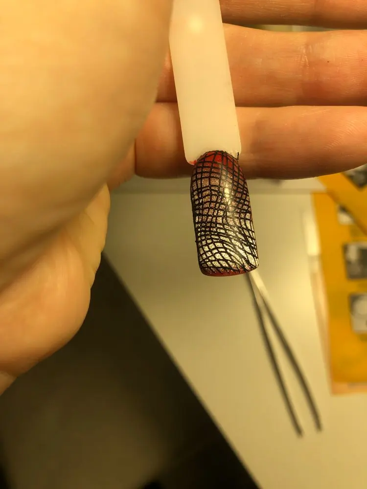 Если честно в работе пока не пробовала. Но очень странно сделано. Края железные очень острые. На первый взгляд вообще не комфортно, и сам латекс ни на чём не держится. Но пока не попробую не могу сказать хорошо или плохо. Доставка примерно месяц.