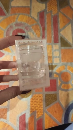 Пришёл в замученной коробке, мятая вся, подушечка вся в царапинах, видимо об коробочку вся шоркалась, вид не очень (на фото плохо видно), липкость на 3, рисунок не переносит... красивый только металический стаканчик но у него острые края, в общем разочарована... на выброс! Доставка месяц