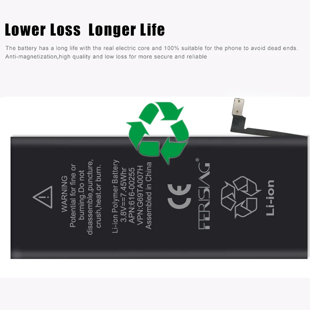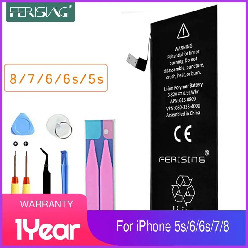 FERISING 100% емкость батареи сотового телефона для iPhone 5S 5C 6 6S 7 8 емкость ремонтные инструменты 0 цикл ЗаменаБатареи batteria Batary