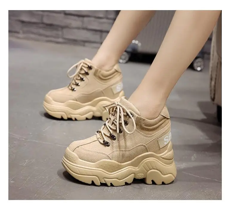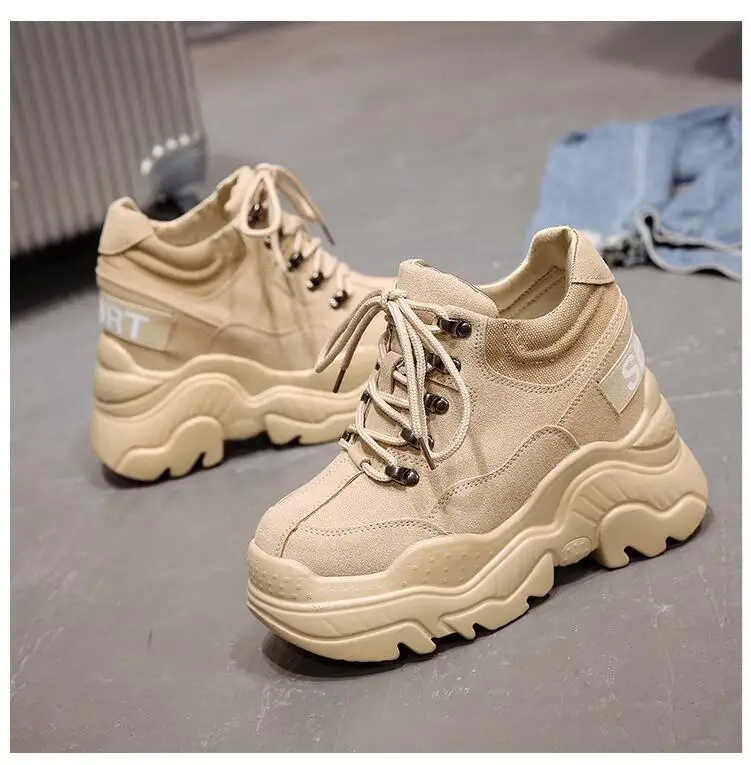 Женские кроссовки на высокой платформе, дышащие, увеличивающие рост, на толстой подошве 12 см