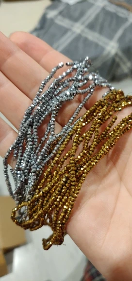Миленькие бусины! Маленькие. Сверкают. Не уверена, что это стекло. Количество в низке не пересчитыаала. Быстрая доставка в Украину. Со 2.01 по 25.01. Пакетик с пупыркой. Положили в почтовый ящик. Поменяла за монетки с небольшой доплатой. Яркие. Блестят и переливаются. Ими красиво перемежать бусины, когда делаете украшения. Рекомендую и благодарю!