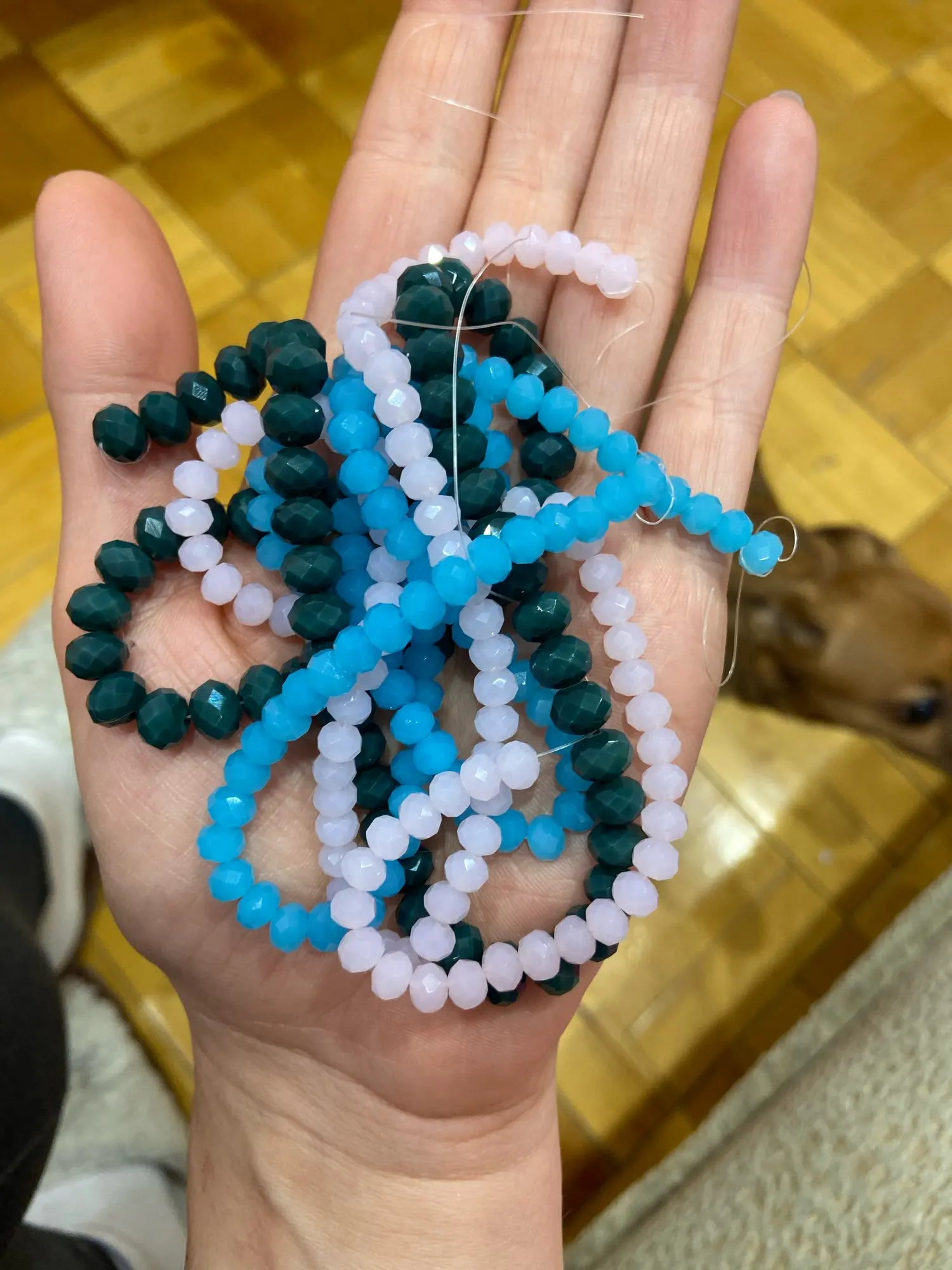 То, что в виде бус приходят - это ещё и лучше чем в пакете рассыпью. Часто бывает некоторые с браком и нет дырочки, либо дырочка деформирована и иголка не проходит, а в таком формате (бус) наверняка все дырки есть и рабочие!