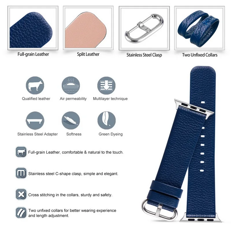 ❤1 X Кожаный ремешок для Apple Watch с пряжками из нержавеющей стали (Apple watch только для иллюстрации и не входит в комплект.)