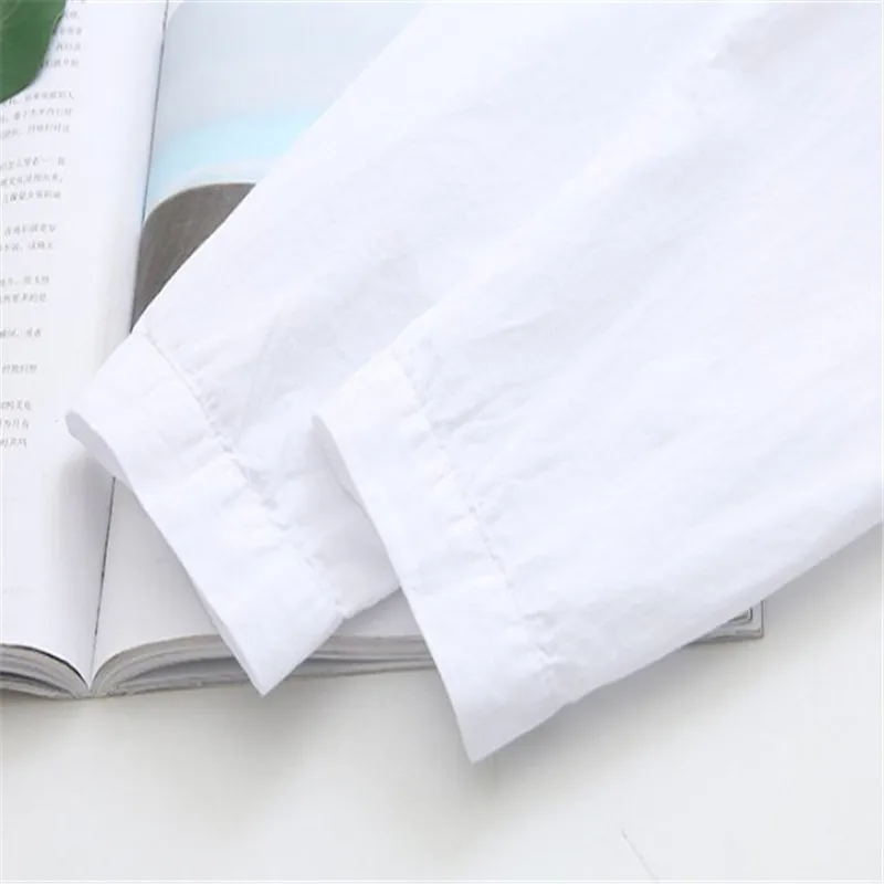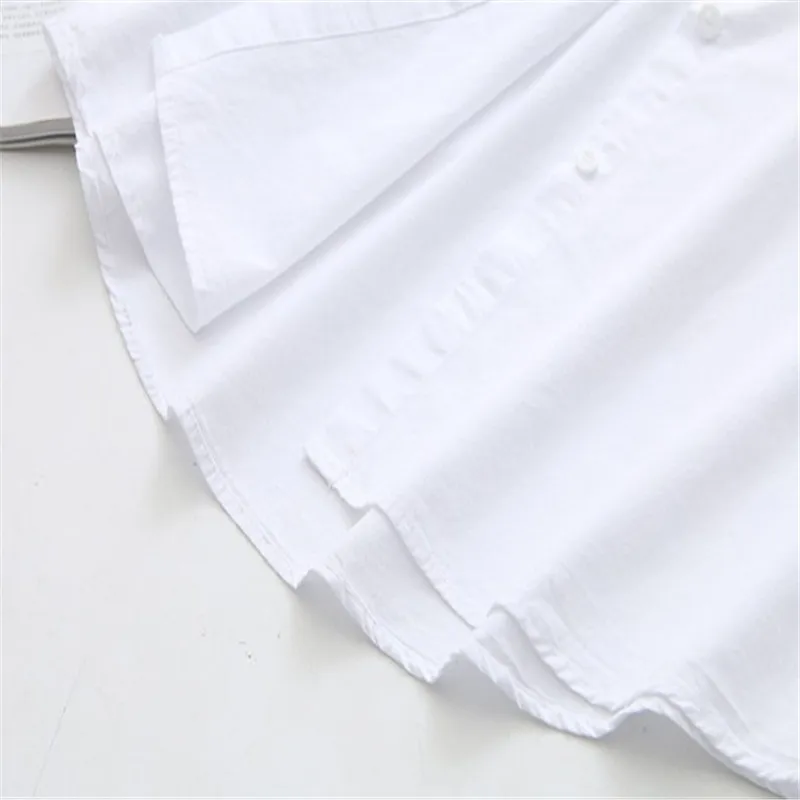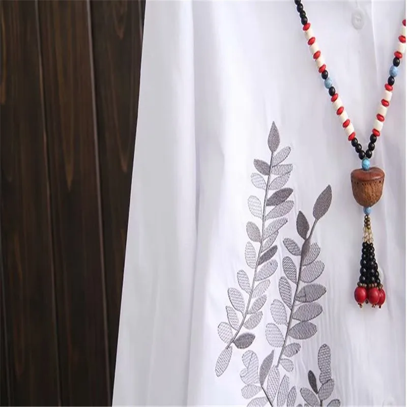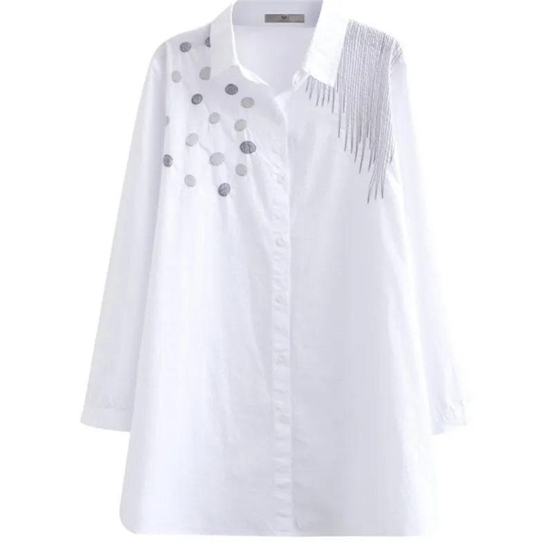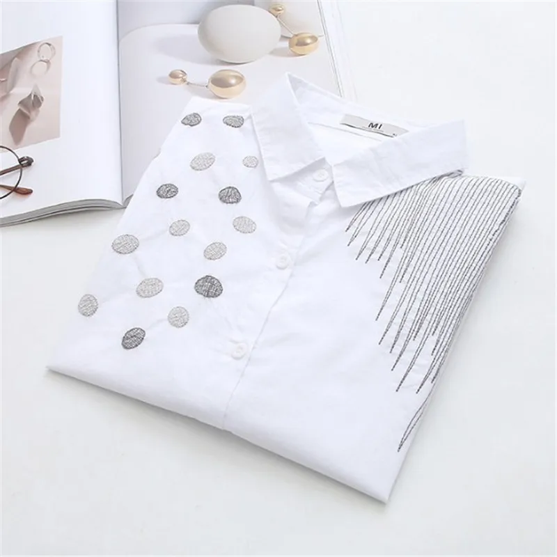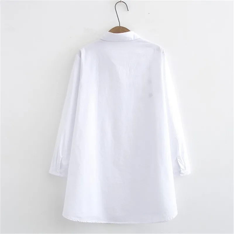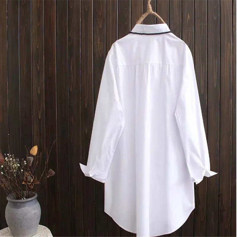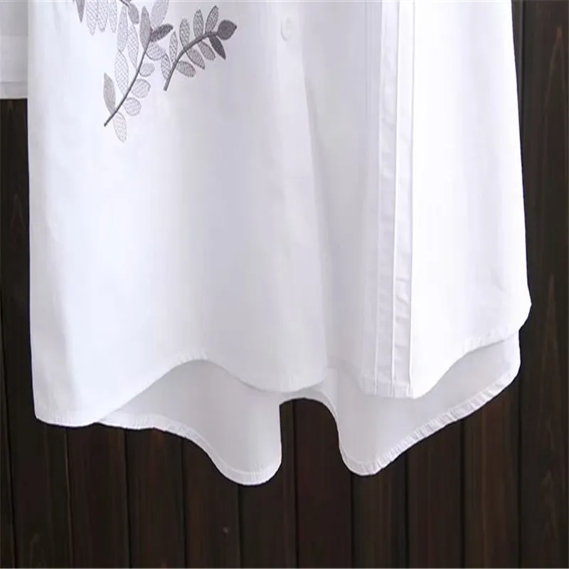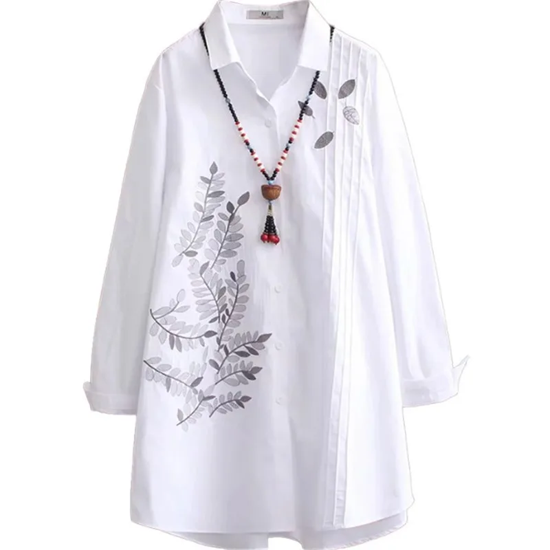 Блузка женская с длинным рукавом, белая свободная приталенная рубашка из хлопка в Корейском стиле, с вышивкой, большие размеры XL 4XL, весна