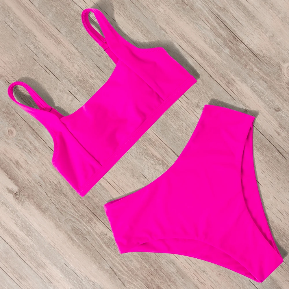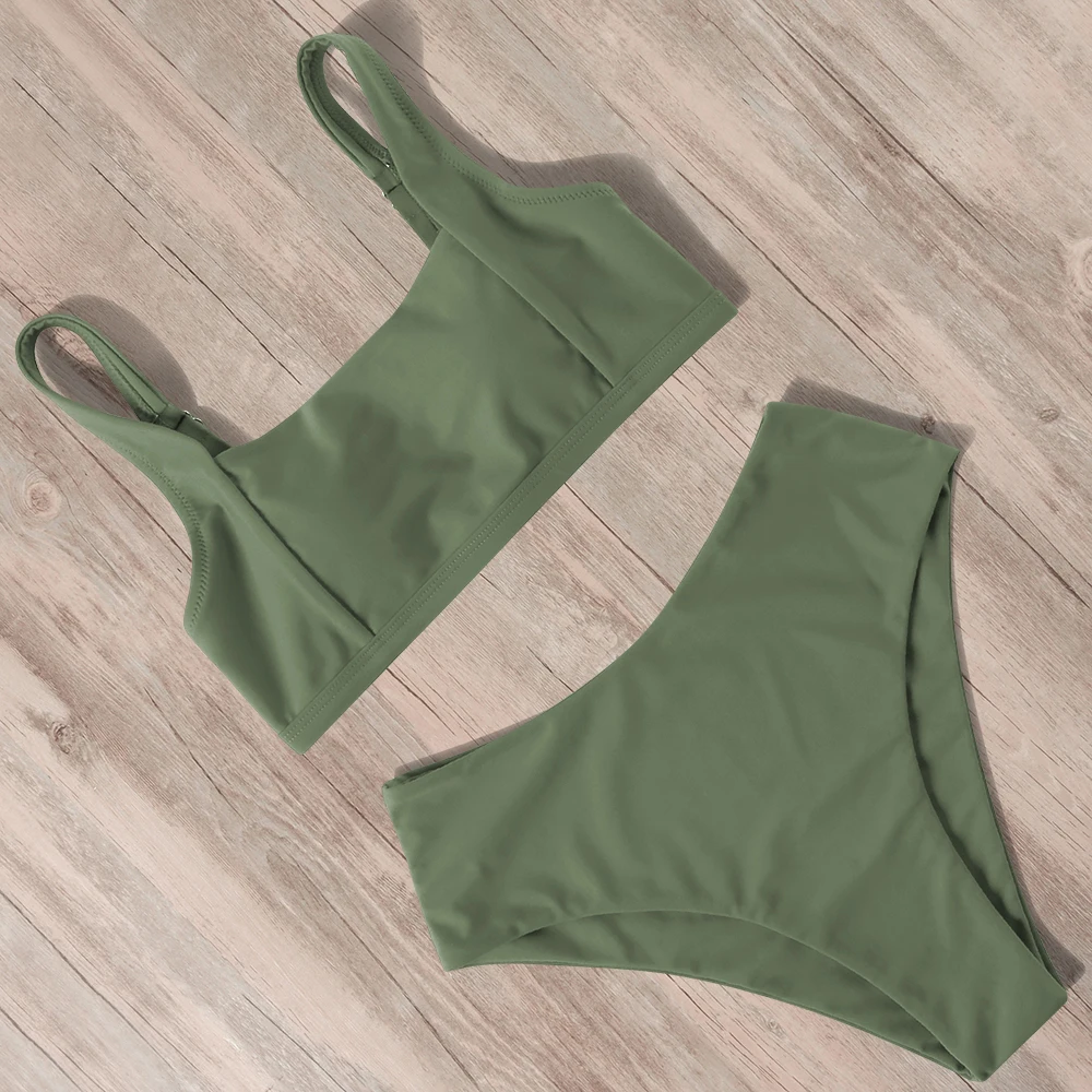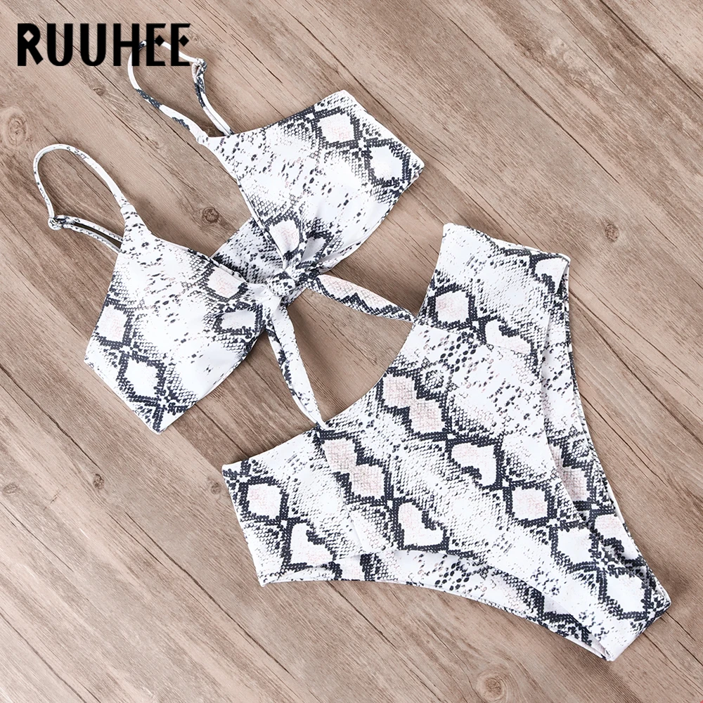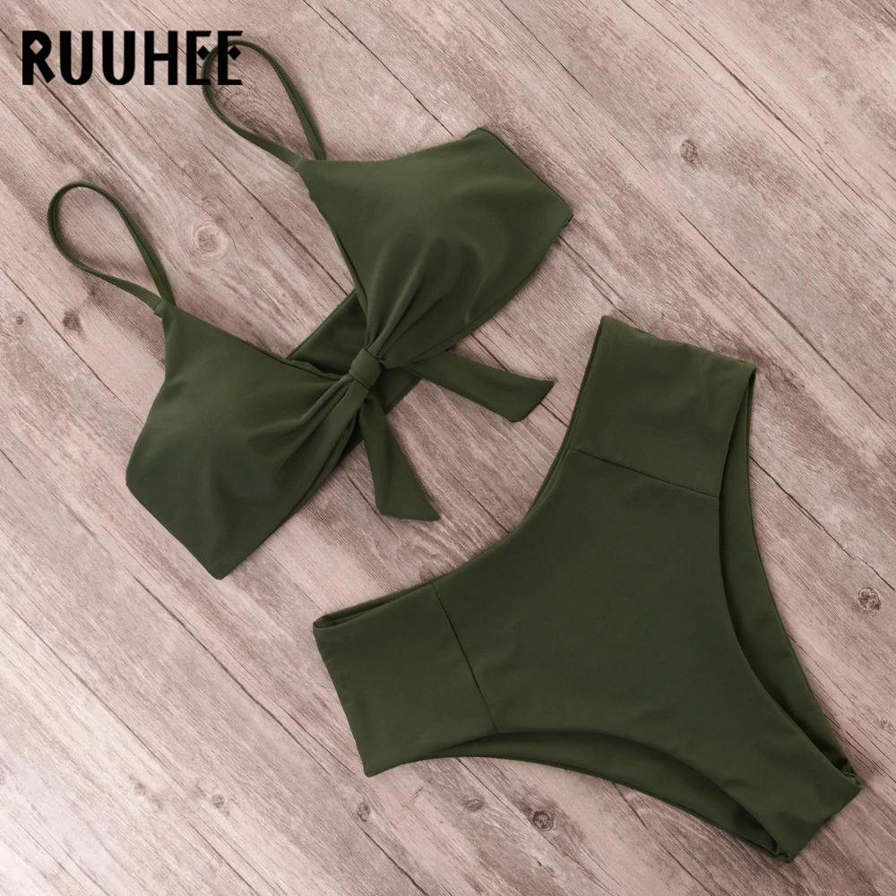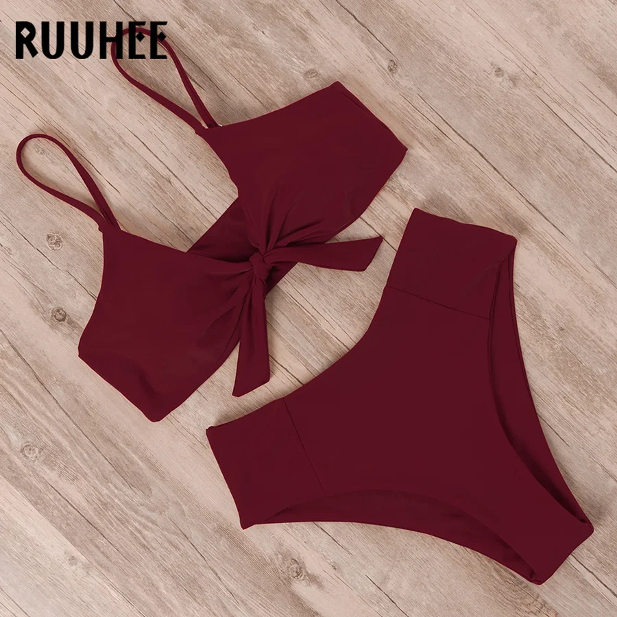 Бикини RUUHEE, женский купальник, комплект бикини с высокой талией, пуш-ап, купальный костюм с узлом спереди, женская летняя пляжная одежда, бикини, 2021