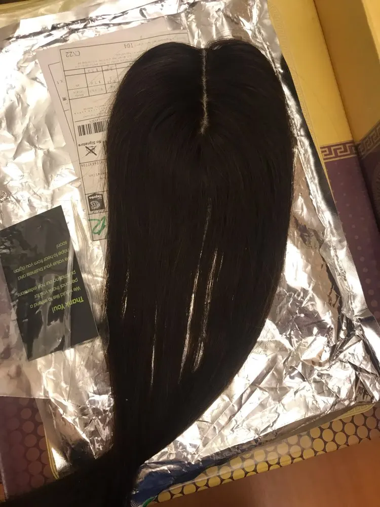 Накладка пришла очень быстро, до спб примерно за неделю в пункт выдачи в пятере. Теперь о минусах. Стоит 3к за тот вид, ктр я заказала. Получила очень жиденькие волосы, широкий пробор с пятнами на нем и от ручки синей и коричневые микро пятна от краски какой-то, еще и узелок от заколки не с внутренней стороны а наверху у пробора, выглядит как жук какой-то, капец. Пробовала ацетом стереть пятна, не вышло. Цвет брала самый светлый, но приехал желтый, камера высветляет. Продавец предложил вернуть всю сумму, если я отправлю заказ назад, но с нашей почтой это дорого и еще и похерится. Вернули в общем 40 процентов от уплаченной суммы, не знаю куда девать теперь этот топер и денег жалко, конечно. Покупала маме, у нее алопеция и эта покупка была реально нужная, но увы.