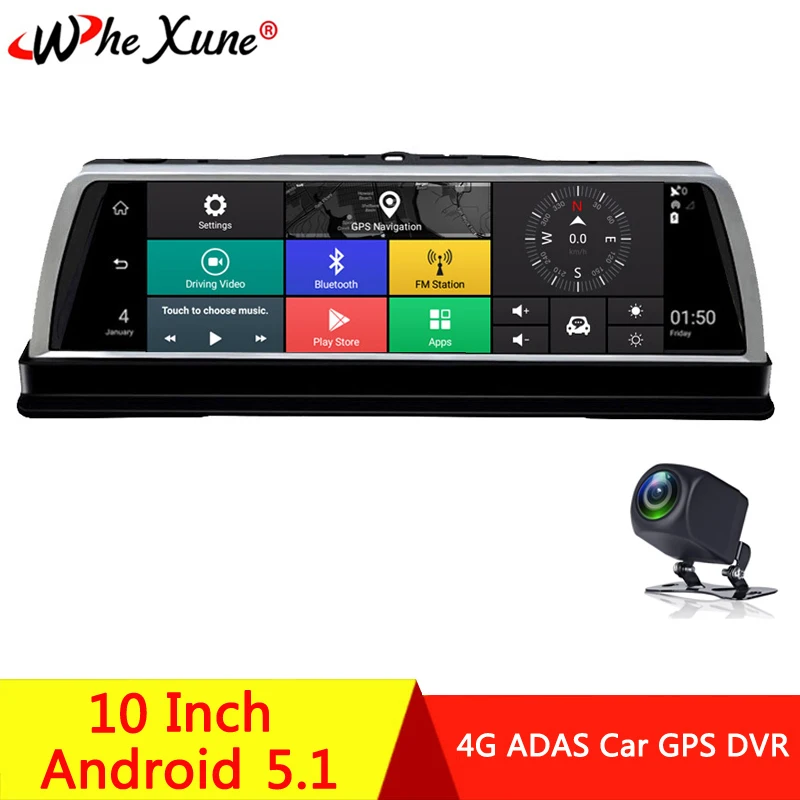 WHEXUNE 2021 Новый Автомобильный видеорегистратор, видеорегистратор 4G ADAS Android 10 дюймов, центральное зеркало, GPS WiFi Full HD 1080P, задний двойной объектив, видеорегистратор