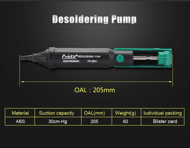 Отсос для олова Pro'sKit Proskit 8PK-366N-G, присоски для пайки, па...