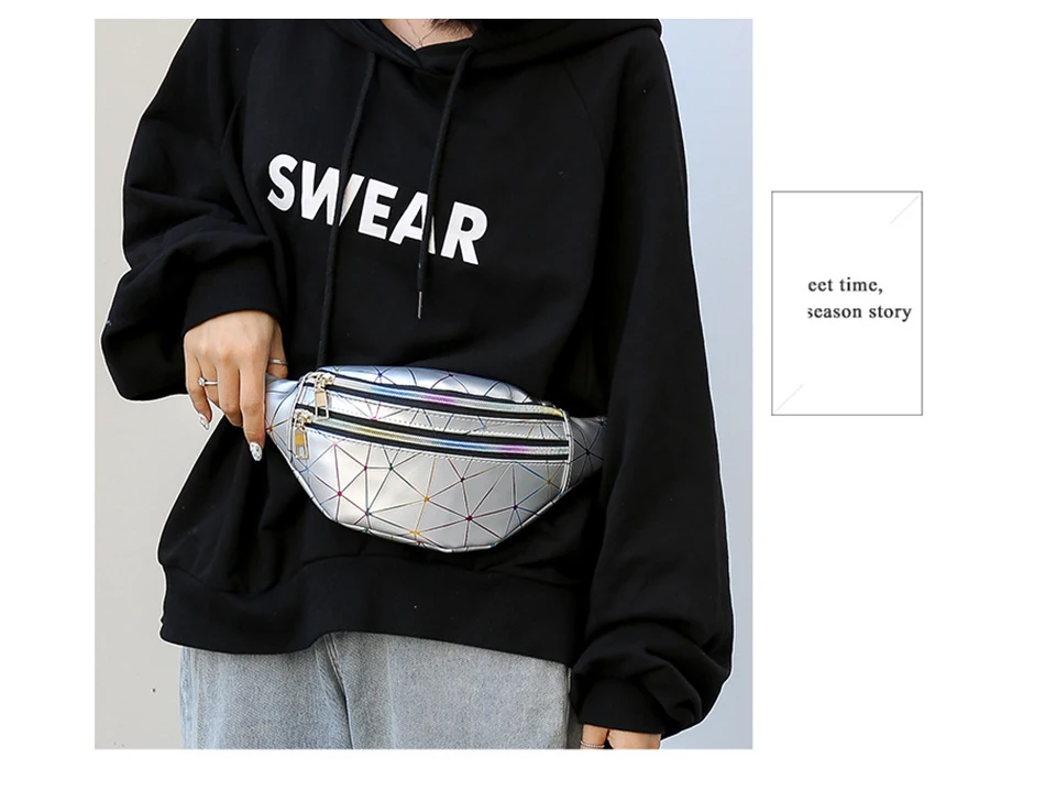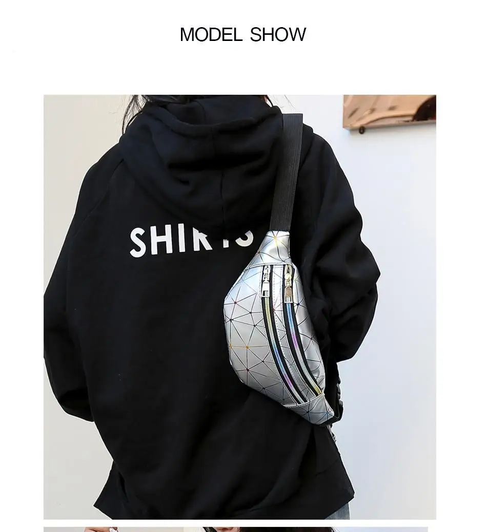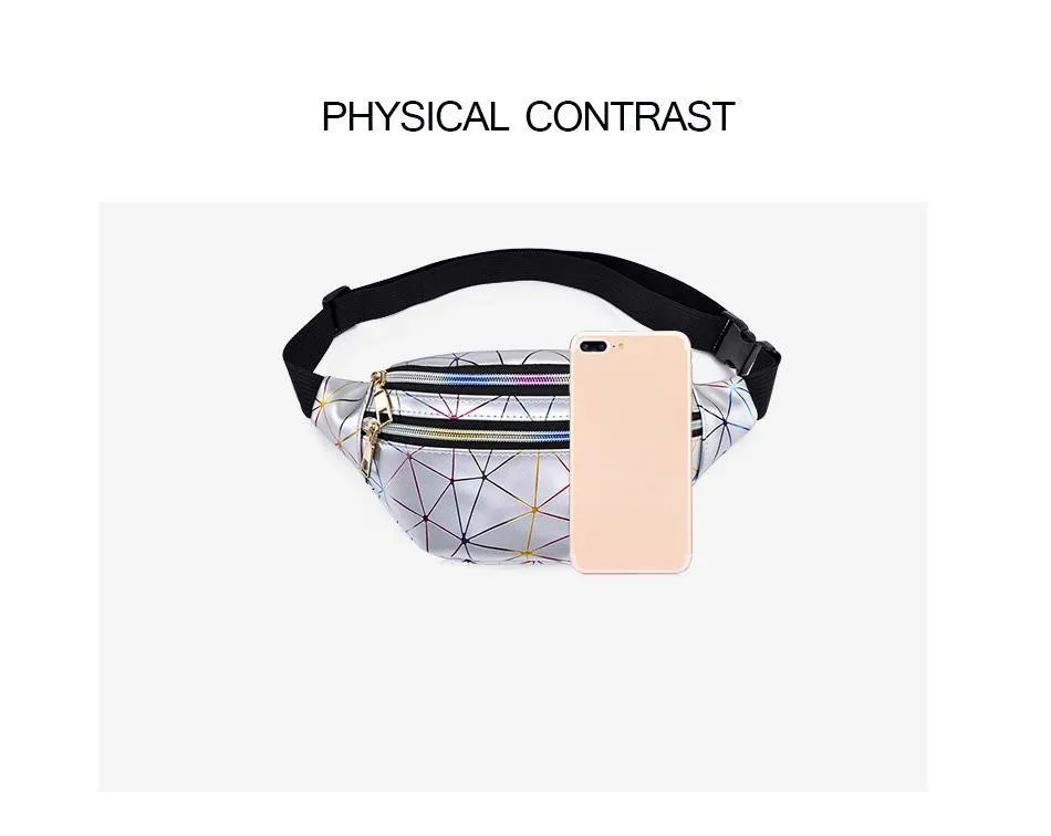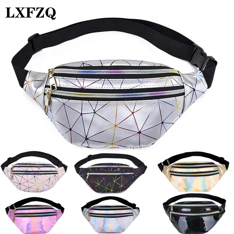 Поясная Сумка LXFZQ для женщин, голографическая забавная Водонепроницаемая блестящая сумка с геометрическим узором, модный поясной кошелек для телефона с лазерной печатью