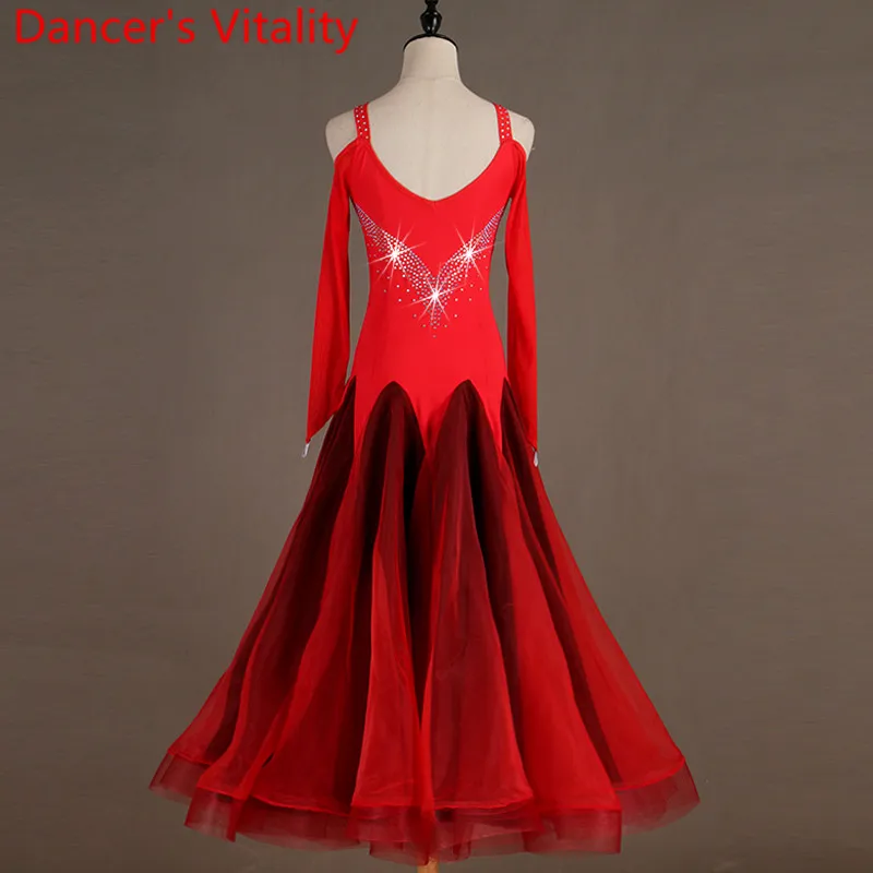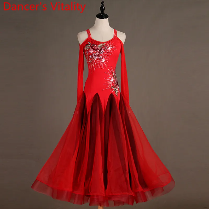 Профессиональное подгонянное женское бальное платье вышитое отвесное красное платье вальс современная танцевальная одежда Танго ча-ча