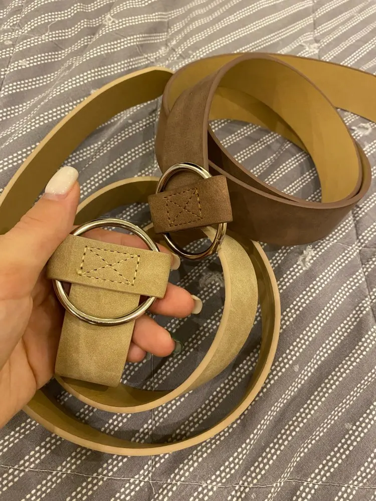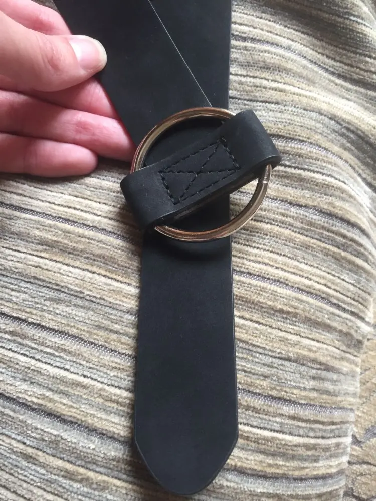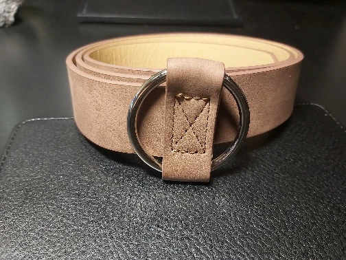Это второй мой ремень. Первый был в чёрном цвете. Очень удобно, что можно его как на платье, так и на джинсы одевать. Затягивать. За счёт того что он без дырочек. Качество клевое. Чёрному у меня уже больше года. И ничего с ним не случилось