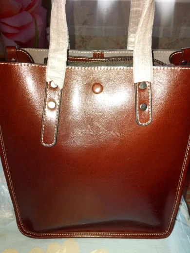 очень красивая сумка. Пошита супер аккуратно. Чисто кожаная и еше и блестящая. Не лакированная, а с небольшим блеском. Смотрится очень дорого. Много карманов. И главное не выглядит как кашолка. Супер. Спасибо.!!!