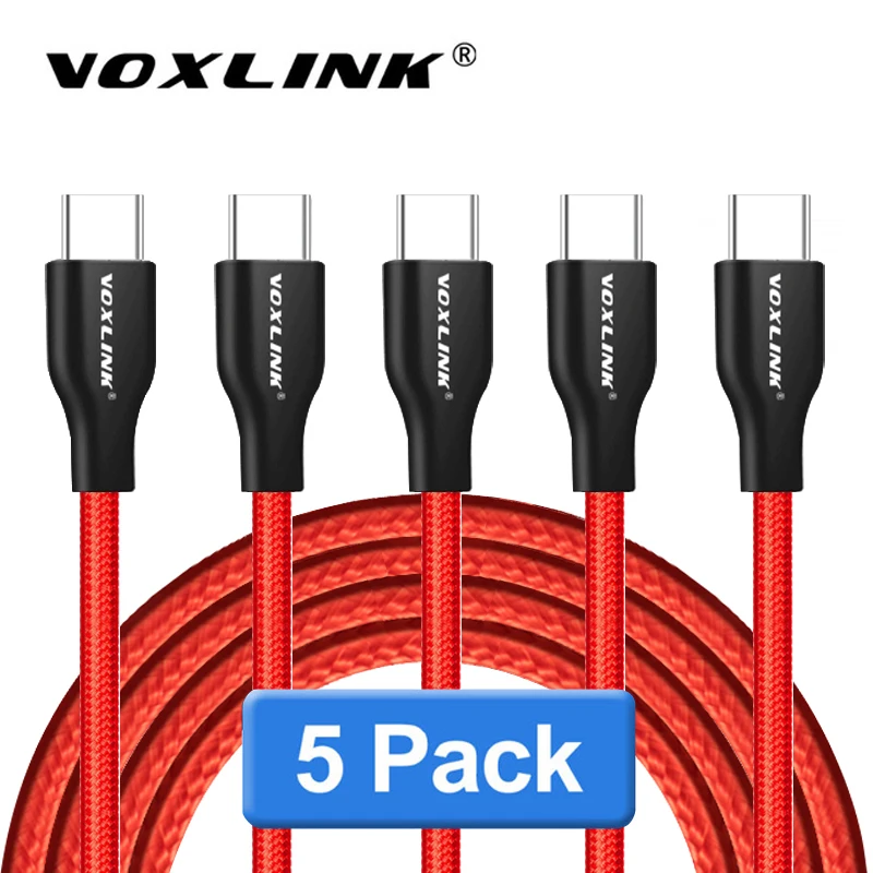 Кабель USB с нейлоновой оплеткой VOXLINK 5 шт., кабель быстрой зарядки TypeC для Samsung s8 s9 Galaxy для HTC 10 Macbook Xiaomi Mi8 A1, зарядный шнур