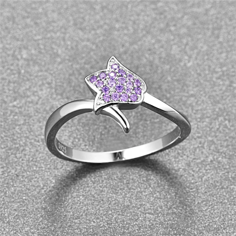 Женское кольцо с розой и аметистом, из серебра 925 пробы