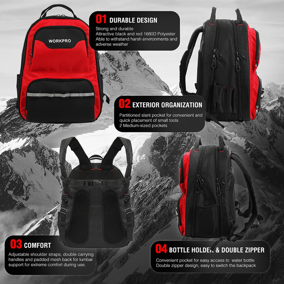 Сумка для инструментов WORKPRO, новый дизайн 2020, многофункциональный рюкзак, органайзер для инструментов, сумка, водонепроницаемые сумки для инструментов, рюкзак