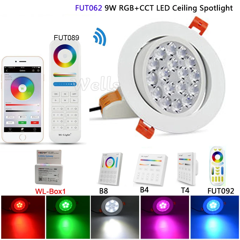 Miboxer 9W RGB + CCT светодиодный потолочный круглый прожектор AC86-265V FUT062FUT089FUT092B8B4T4iBox1iBox2 2,4G контроллер