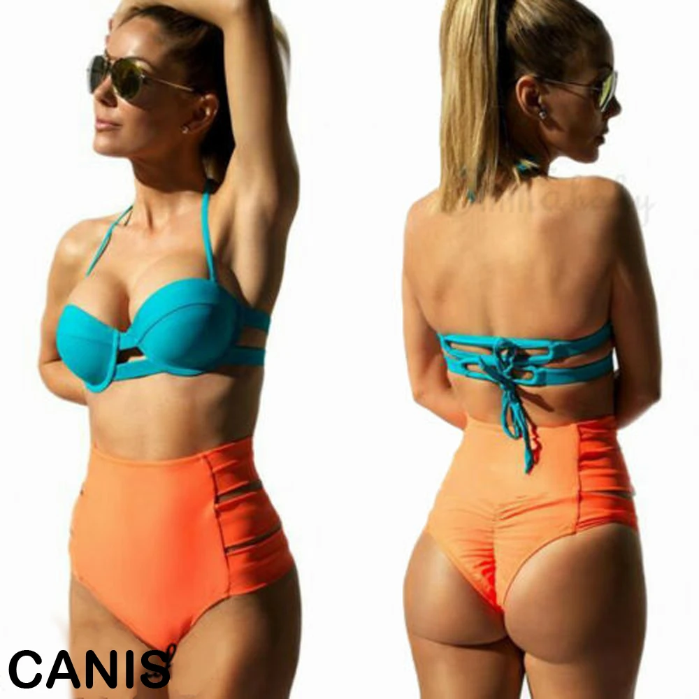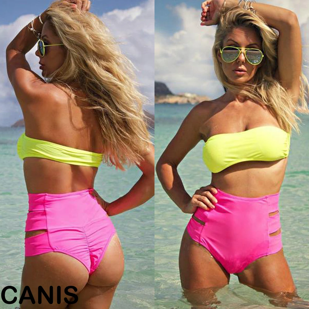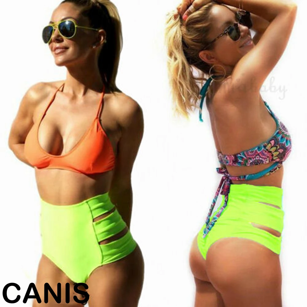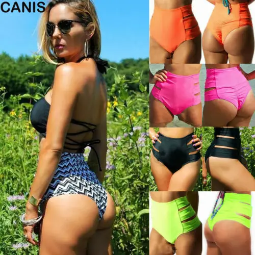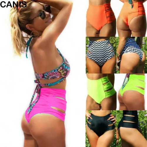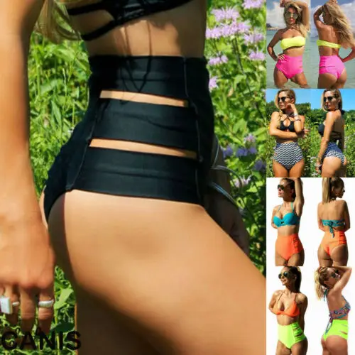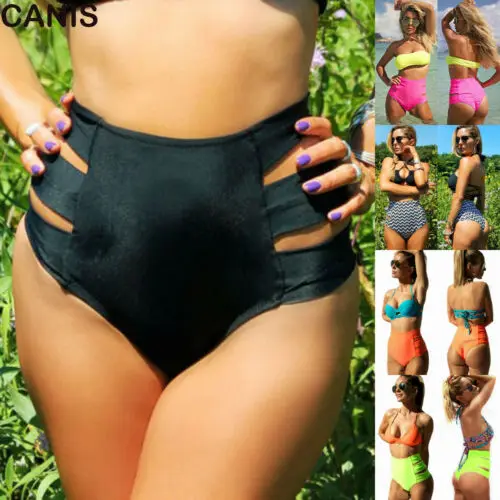 Женские раздельные шорты из двух частей с высокой талией, женское сексуальное бикини, плавательные плавки, однотонное нижнее белье для купания на лето