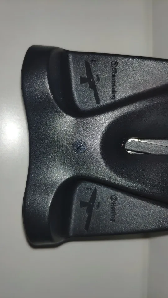 Точилка понравилась - точит хорошо и быстро. Главное правильно точить в одну сторону, а не елозить ножом как на скрипке. Подсказки есть на самой точилке: для заточки нос ножа опускаете вниз и тянете на себя вверх, для правки нос вверх и тянете к себе вниз. Проводить раза три. Угол лезвия сформируется после нескольких заточек и будет острее с каждым разом. Рекомендую товар и продавца!
