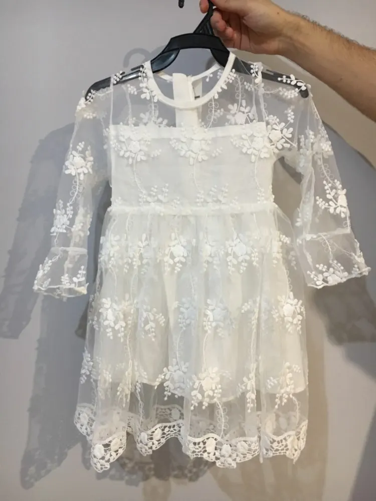 Очень нежное платье, подкладка и в ручках есть. На рост 98, брала 4Т, на бирке написано 110 подошли идеально по плечам и талии. Доставка за 2 недели с момента отправки.
