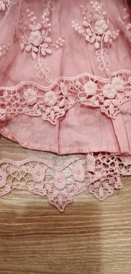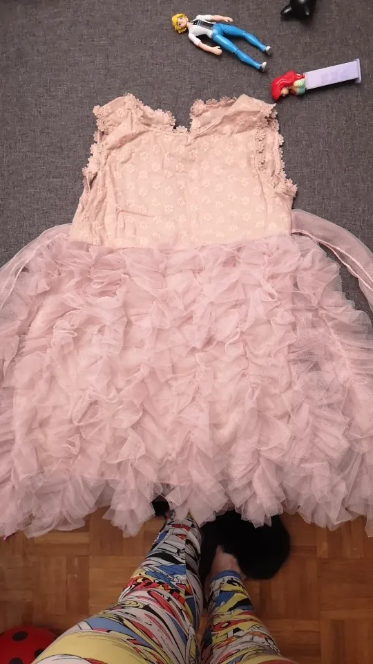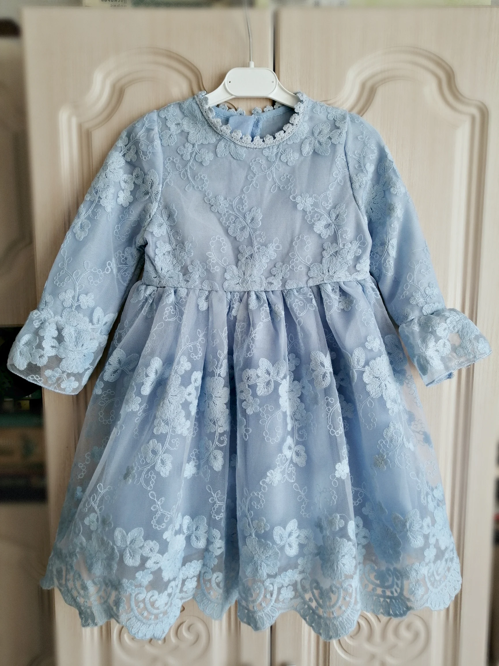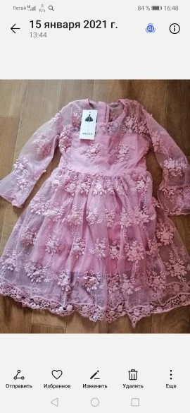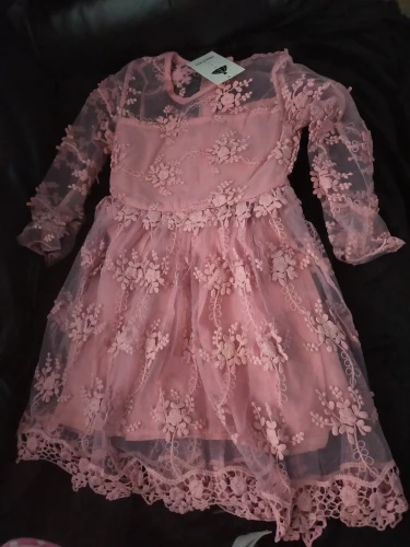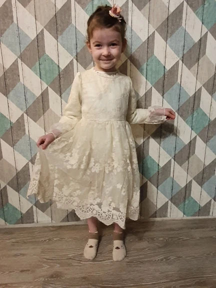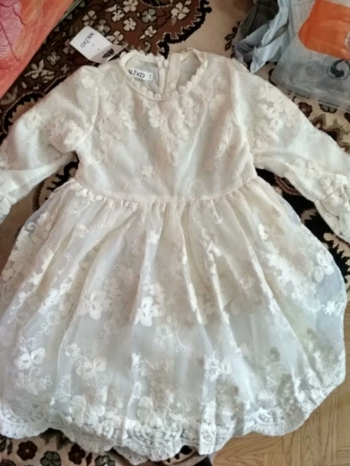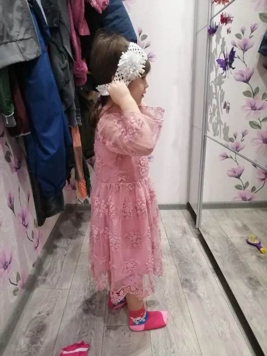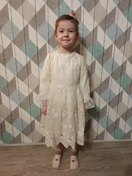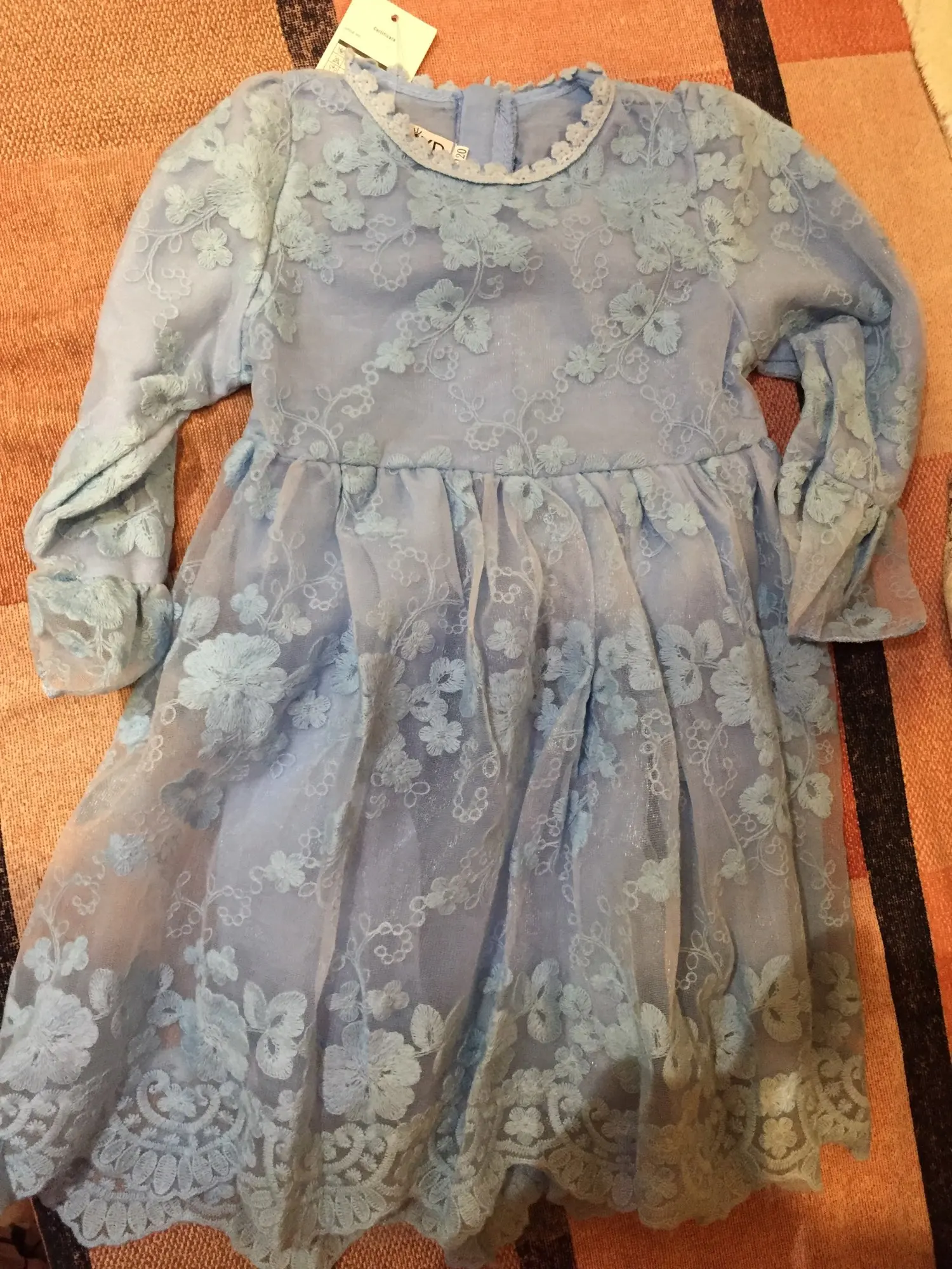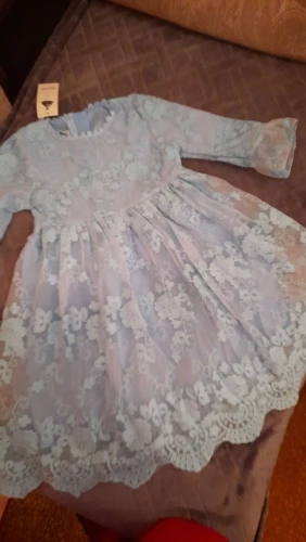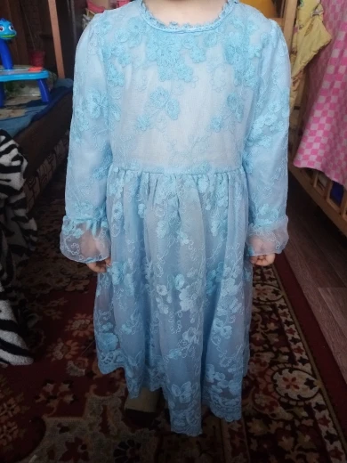 Платье восхитительное!!! Есть немного торчащих ниток и небольшой запах, но это общего впечатления от платья не портит, так как платье Доставка до РБ быстрая, отправили 12.01,получили 05.02 Нам немного великовато, у нас рост 85 см, заказали 3Т
