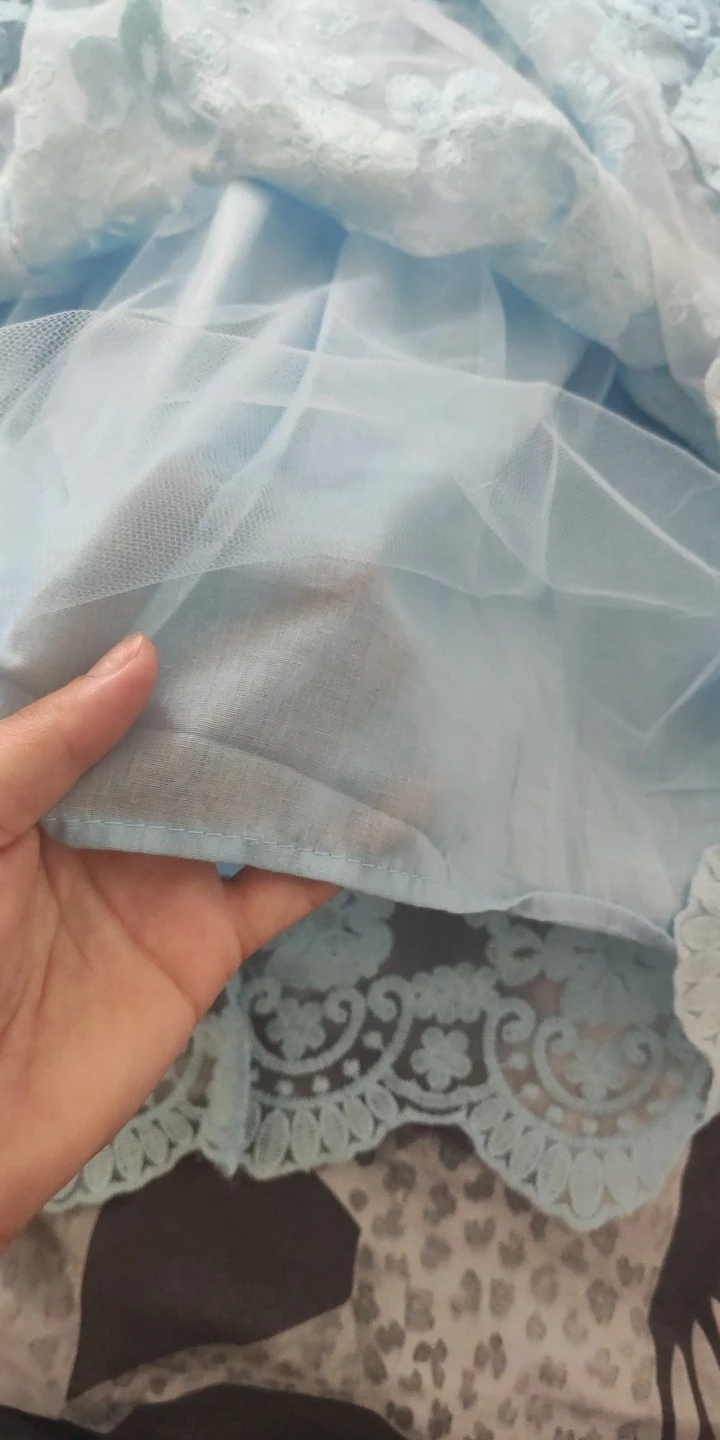 Отличное платьице! Все так,как в описании.Цвет нежно-голубой, два подъюбника,пошито вполне приемлемо..Кое-где нитки торчат,но это не критично,обрезала и все...А доставка вобще супербыстрая! Еще ни один заказ мне не доставлялся с такой скоростью!!
