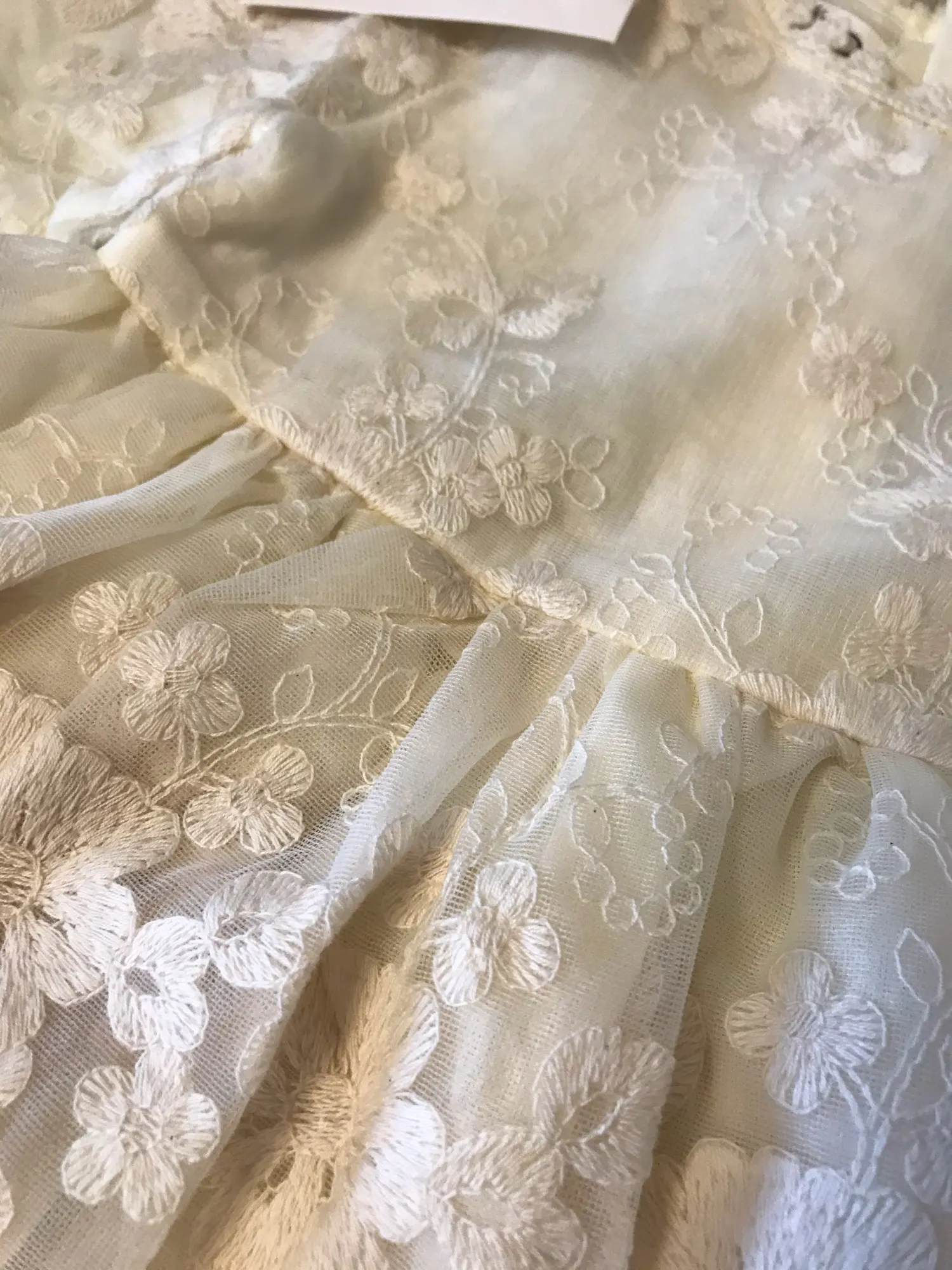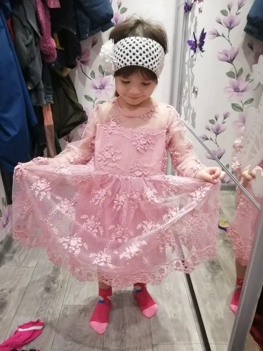 Платье красивое, нежное, внутри хлопковая подкладка. На 2,9 г - размер 3 - только только.