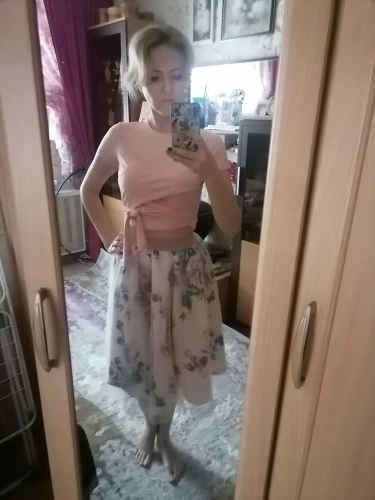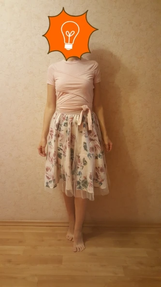 Комплект неплох, но для высоких не подходит. Мой рост 180 см, заказала специально размер побольше, основываясь на отзывах, но топ всё-равно сел плохо из-за этих лент. Юбка получше села: длиной ниже колена оказалась, что уже хорошо, но резинка совсем тугая, и из-за этого впивается в кожу и образует складочки, хотя лишнего жира на талии у меня нет, (или мне так как казалось?)). На юбке аж 3 шва, кстати. Позже фото добавлю.