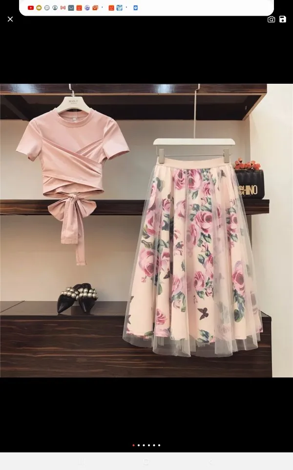 На мой 48 российский размер - XL маловат топ . Очень короткий. Юбка на резинке села нормально. Цвет и модель как на картинке. Размер XL подойдёт на 44-46.