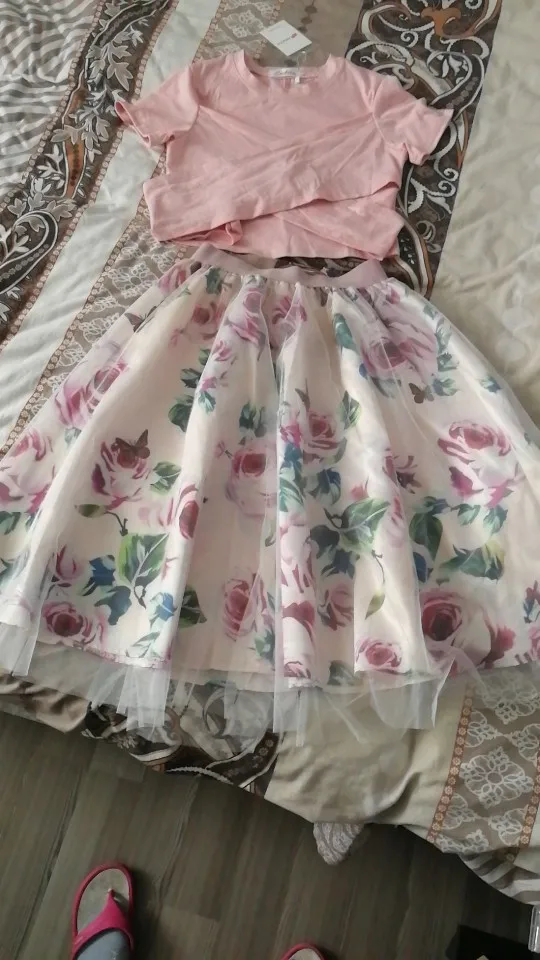 Товар качественный, пришёл быстро по меркам Алика, юбка яркая и футболка цвет соответствует описанию и картинке. Отлично смотрится на худенькие девочках. Подходит для тёплой весны и лета. Футболка приятная на ощупь. Юбка без подкладки. Не стирала ещё, не понятно лиряет или нет