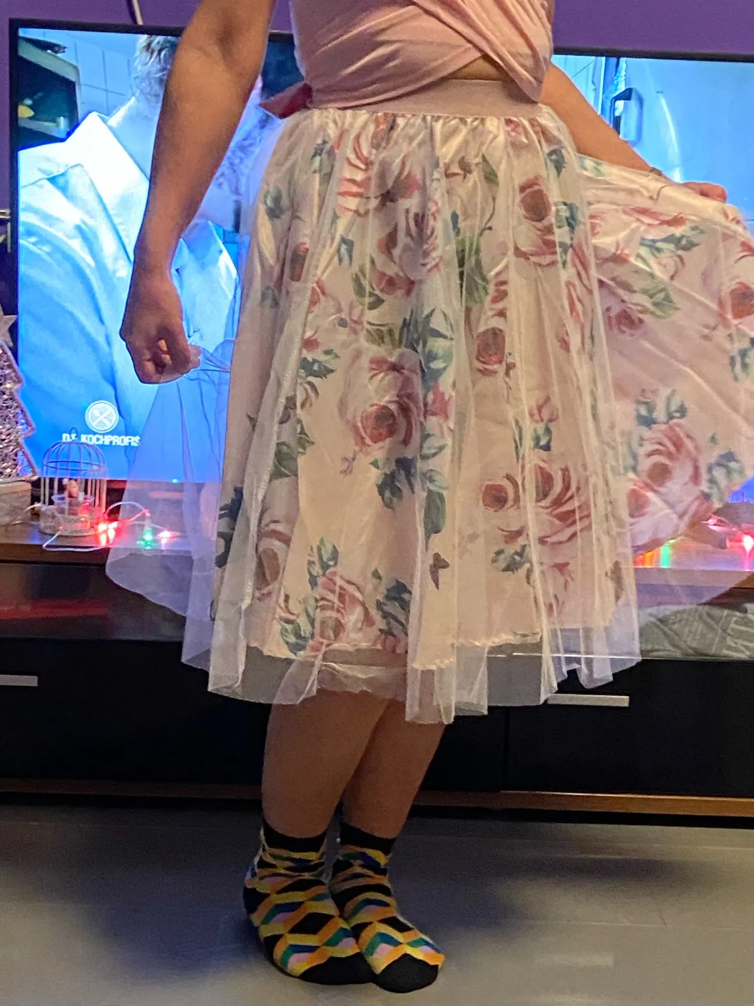 Товар пришел быстро,меньше месяца в МО.Соответствует описанию,просвечивают швы на верхней юбке.