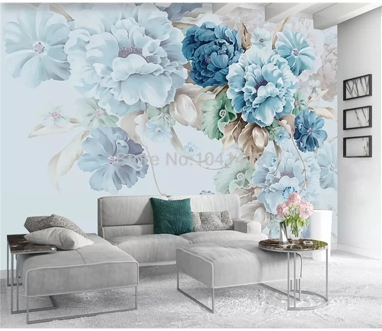 Обои на заказ в скандинавском стиле, ручная роспись, цветочные пионы, пасторальная роспись, фон для гостиной, телевизора, настенная живопись