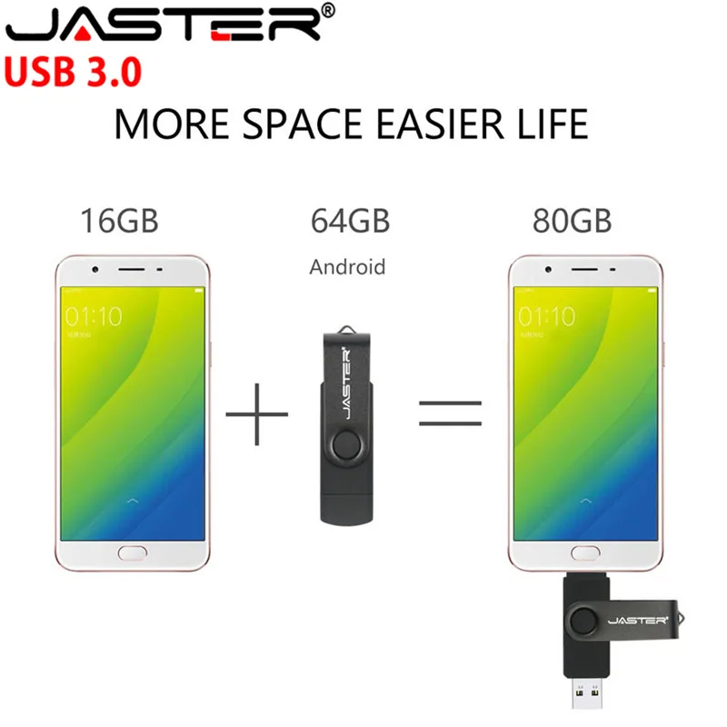 Флеш-накопитель JASTER USB 3,0, металлический USB флеш-накопитель OTG, Флешка 2 в 1 с Micro USB, флэш-диск 32 ГБ, 64 ГБ, 128 ГБ, 256 ГБ