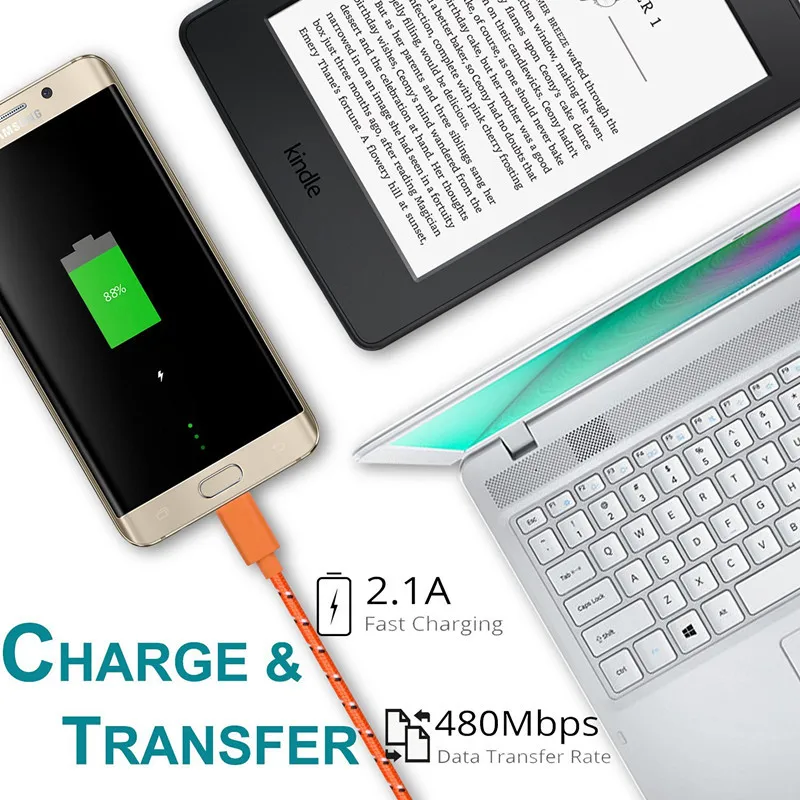 Нейлоновый кабель Micro USB для быстрой зарядки Samsung J6 A6 Nokia...