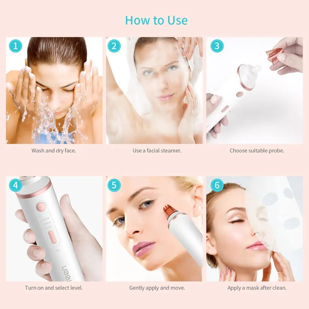 Инструмент для удаления чёрных точек:Разработан с импортным воздушным насосом и сильным всасыванием. Он легко очищает черные точки, акны, осветляет и омолаживает ваше лицо, а затем Уменьшает мелкие морщинки.