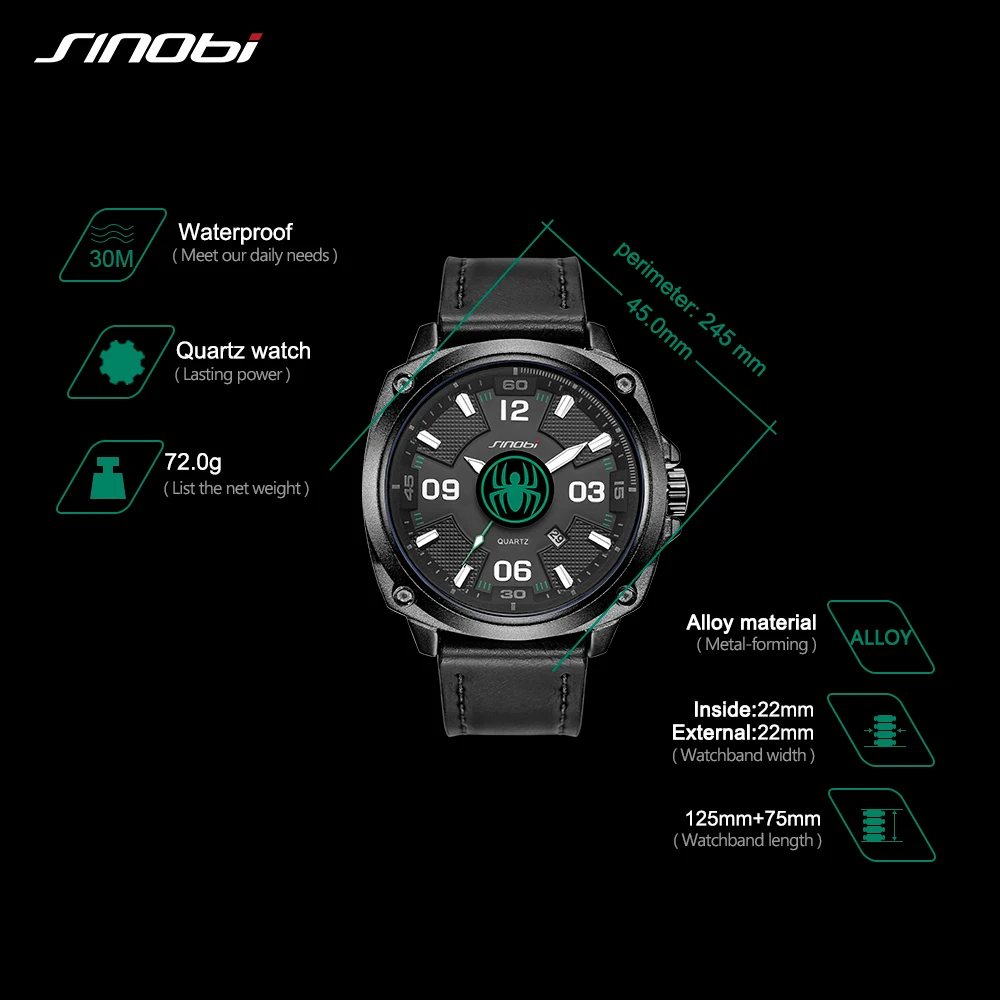 Relojes SINOBI Креативные мужские часы лучший бренд Hero Man Series Спортивные кварцевые наручные часы темно-синие военные часы relogio masculino