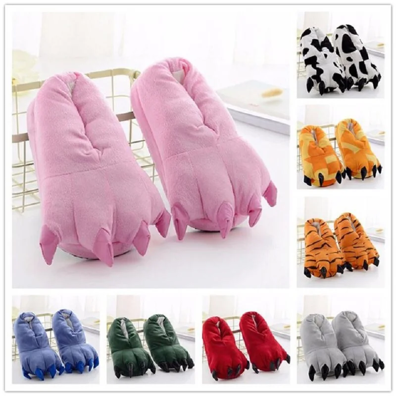 Тапочки для мальчиков и девочек, пижамная обувь, детские Мультяшные единороги, тигровая лапа, зимние теплые Мультяшные животные, коготь, Multicolor4 - 14T
